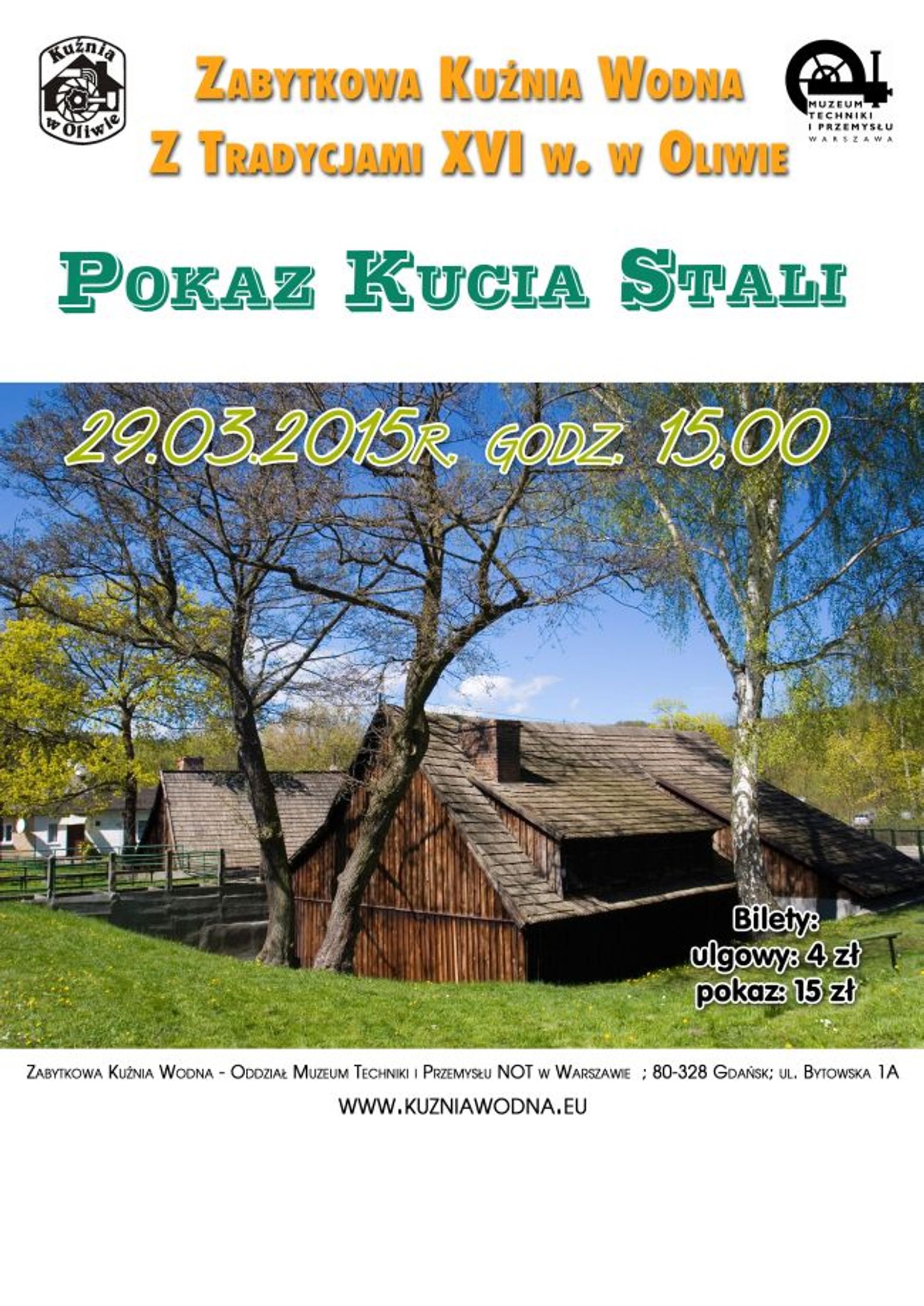Bilety wstępu można nabyć za 15zł (bilet na pokaz kucia godz.15), natomiast bilet ulgowy ( młodzież szkolna) za 4zł.