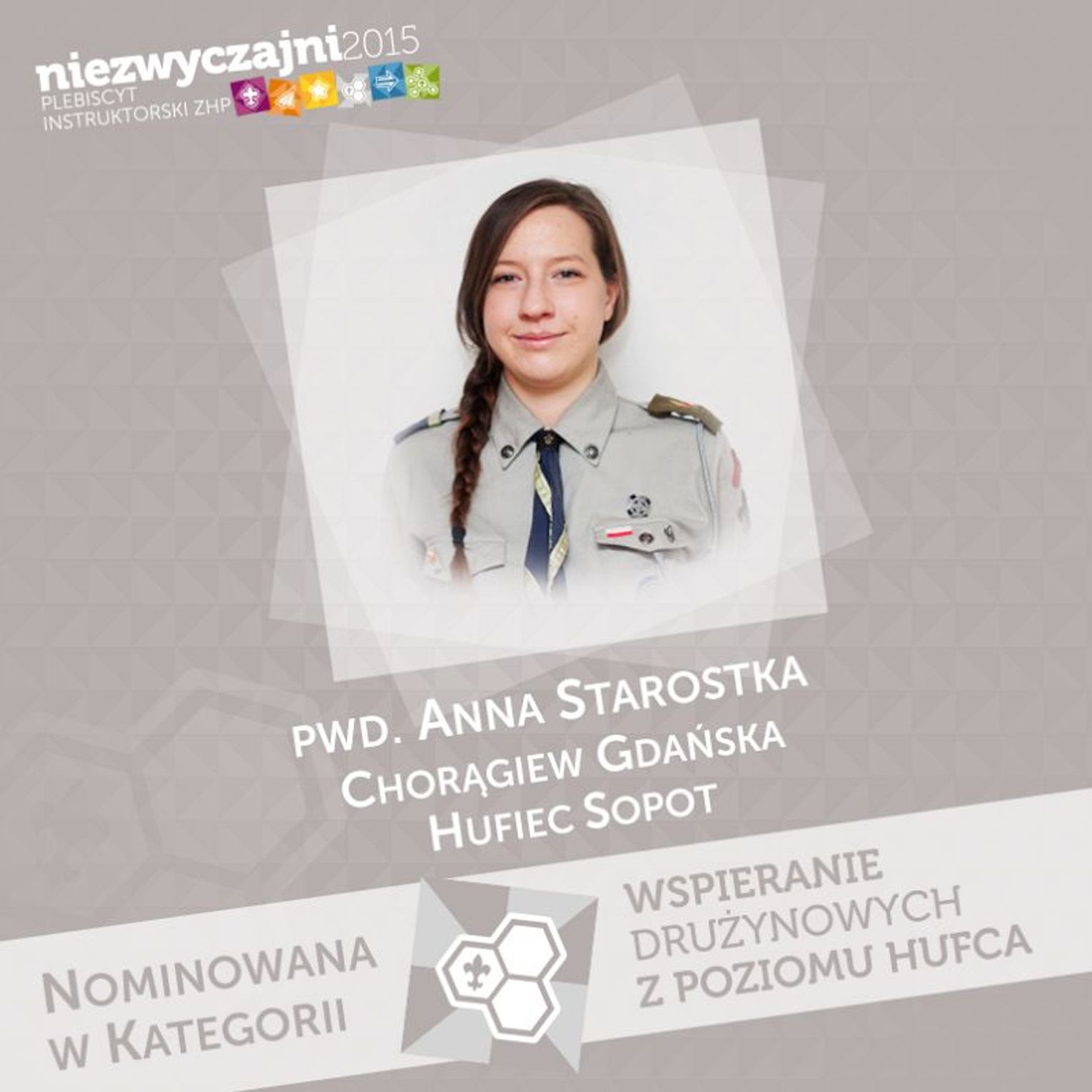 Druhna Anna Starostka latem 2015 roku samodzielnie zorganizowała wyjazd 15 osobowej grupy młodzieży (harcerzy i harcerek należących do Hufca ZHP Sopot) na Białoruś. Nie korzystała z usług żadnego biura podróży, z pomocą zespołu, który sama zebrała, przygotowała harmonogram działań. Przed wyjazdem na „Wędrówkę Śladami Mistrzów” uczestnicy wycieczki bezpłatnie uczyli się rosyjskiego i przygotowywali trasę, którą wyznaczał literacki szlak dzieł Adama Mickiewicza i Elizy Orzeszkowej.