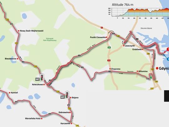 od godz. 7:30 do godz. 13:50 zostaną zamknięte ulice: Waszyngtona, św. Piotra, Wendy (od Portowej od Chrzanowskiego), Chrzanowskiego (od Wendy do Polskiej), Polska (jezdnia południowa od ronda Karlskrony do Celnej i jezdnia północna od Celnej do Janka Wiśniewskiego) od godz. 7:30 do 10:30 zostaną zamknięte ulice: Janka Wiśniewskiego (w kierunku Estakady Kwiatkowskiego od Placu Konstytucji do Estakady Kwiatkowskiego, odcinek od Placu Konstytucji do Polskiej zamknięty do 13:45), Estakada Kwiatkowskiego (jeden pas ruchu od Janka Wiśniewskiego do Morskiej), Morska (jeden pas ruchu od Kartuskiej do Estakady Kwiatkowskiego- kierunek Centrum), Kartuska (połowa jezdni), Jaskółcza (połowa jezdni), Jałowcowa, Marszewska (do Wiczlińskiej) od godz. 8:00 do godz. 13:00 zostanie zamknięta ulica Marszewska pomiędzy Koleczkowem a Wiczlińską od godz. 9:30 do godz. 13:30 zostaną zamknięte ulice: Wiczlińska (od Marszewskiej do Chwarznieńskiej), Chwarznieńska (na całej długości z dopuszczeniem ruchu połową drogi w kierunku Centrum od ronda przed Gierdziejwskiego do Rolniczej), Małokacka (z dopuszczeniem ruchu w kierunku Małego Kacka od Wielkokackiej do Stryjskiej) od godz. 10:00 do godz. 13:45 zostaną zamknięte ulice: Olimpijska, Sportowa (od Olimpijskiej do Łużyckiej), Łużycka, Stryjska (od Łużyckiej do Zwycięstwa), Zwycięstwa (oba kierunki od Wielkopolskiej do Władysława IV z dopuszczeniem wyjazdu z osiedla na terenie byłych ogródków działkowych oraz z Krośnieńskiej w kierunku Sopotu), Władysława IV (od Zwycięstwa do Piłsudskiego oba kierunki, od Piłsudskiego do 10 Lutego jezdnia w kierunku Jana z Kolna, od 10 Lutego do Jana z Kolna dopuszczony ruch jednym pasem), Jana z Kolna (dopuszczony ruch jednym pasem od Władysława IV od 3 Maja), Janka Wiśniewskiego (od Placu Konstytucji do Polskiej z dopuszczeniem ruchu w kierunku Centrum- zamknięcie od godz. 7:30) Na terenie powiatu wejherowskiego zostaną zamknięte drogi: od godz. 8:00 do godz. 13:00 Chylońska w Koleczkowie (od granicy z Gdynią do DW 2018) od godz. 8:30 do godz. 11:30 DW 218 (od Chylońskiej w Koleczkowie przez Bieszkowice do DW 224 w Nowym Dworze Wejherowskim) od godz. 8:45 do godz. 12:00 DW 224 (od DW 218 w Nowym Dworze Wejherowskim przez Przetoczyno do Szemudu) w godz. 9:00 do godz. 12:30 droga powiatowa 1405G (od Szemudu przez Kamień i Kielno do DW 218 w Karczemkach) od godz. 9:30 do godz. 12:45 DW 218 (od Karczemek do Chylońskiej w Koleczkowie)
