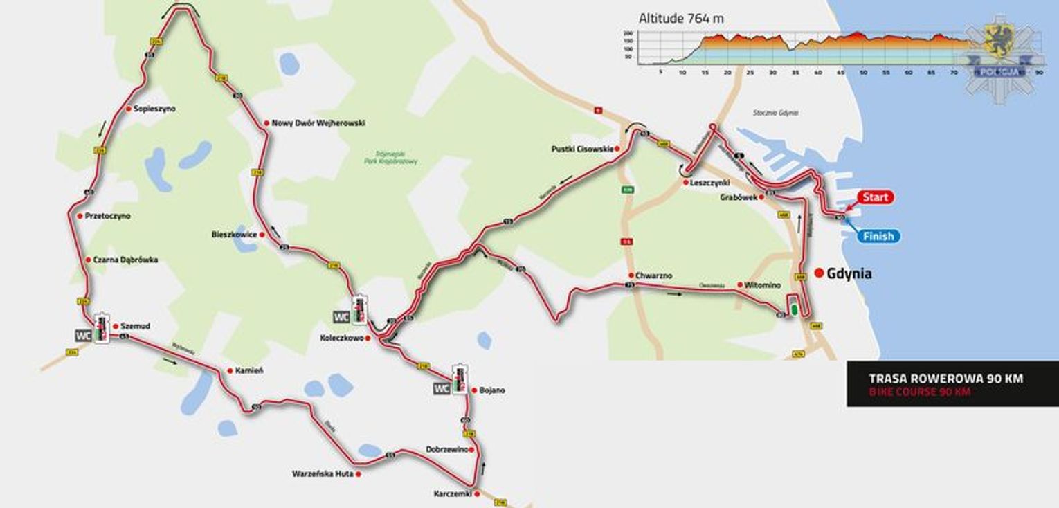 Zawody będą rozgrywane w Gdyni oraz na terenie powiatu wejherowskiego. Zamiany w organizacji ruchu dotyczą miejsca rozgrywania wyścigu kolarskiego oraz trasy biegowej. Organizator zaplanował trasy sportowe, przygotował też plan organizacji ruchu. Na terenie Gdyni nad bezpieczeństwem zawodników, kibiców i mieszkańców będzie czuwało 40 policjantów oraz służby mundurowe. Prosimy o dostosowanie się do wprowadzonych zmian oraz wykonywanie poleceń służb zabezpieczających zawody triathlonowe.