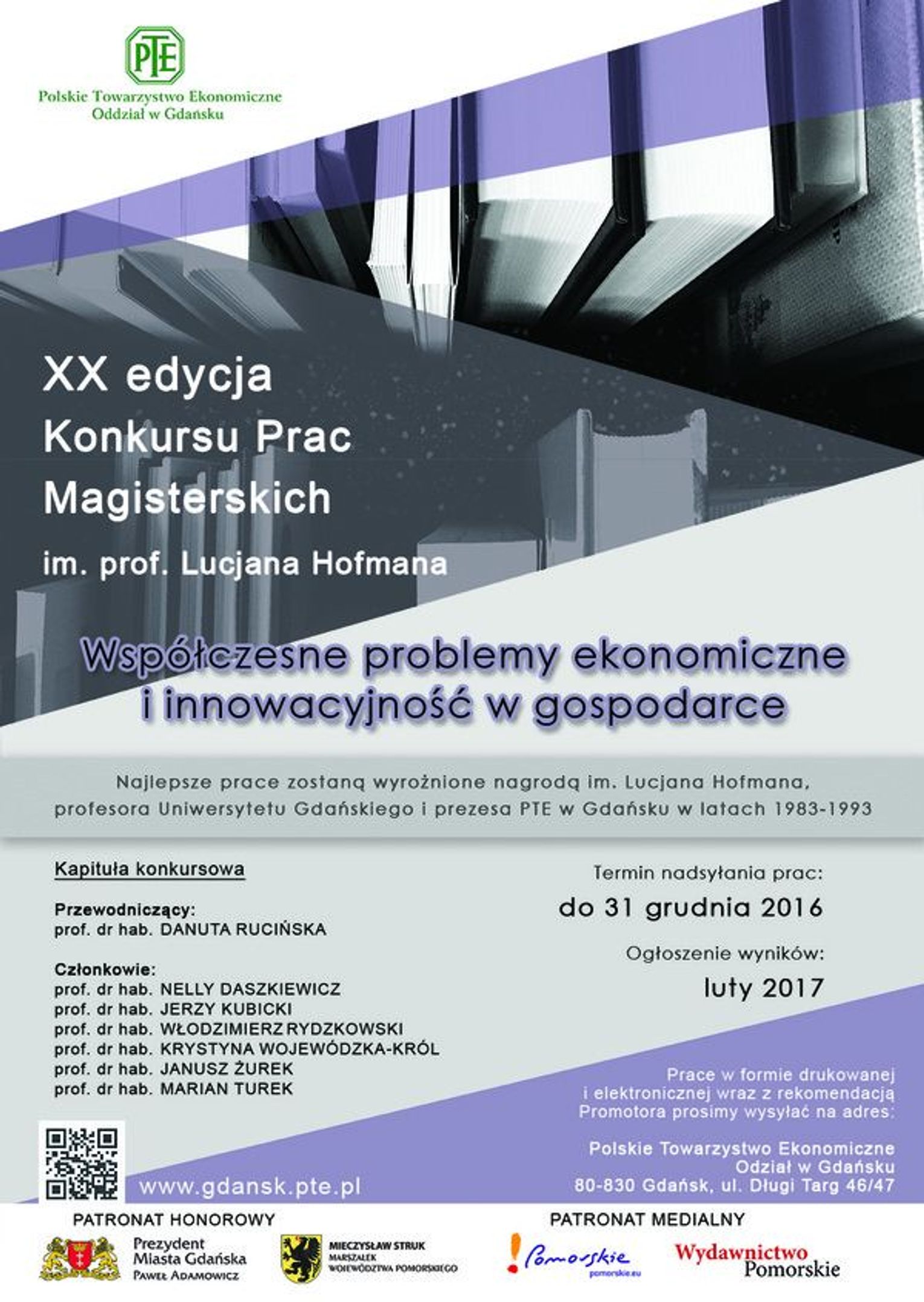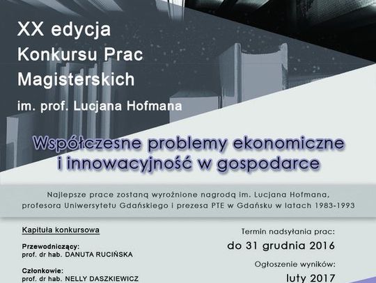 Spośród nadesłanych do Polskiego Towarzystwa Ekonomicznego w Gdańsku prac magisterskich i licencjackich, Kapituła Konkursowa, w której zasiadają profesorowie wyższych uczelni z terenu Trójmiasta, wyłoni te, które będzie można określić mianem innowacyjnych, nieszablonowych i łamiących dotychczasowe schematy.