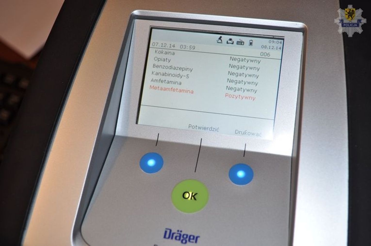 Mężczyzna był agresywny i stawiał opór przy zatrzymaniu. Został obezwładniony i przewieziony do komendy. Jak się okazało autem kierował 21 - letni mieszkaniec powiatu kościerskiego. Mężczyzna został przebadany na zawartość narkotyków w organizmie. Elektroniczny analizator, który posiadają bytowscy policjanci, precyzyjne wskazał, że mężczyzna jest pod działaniem metaamfetaminy. 21
