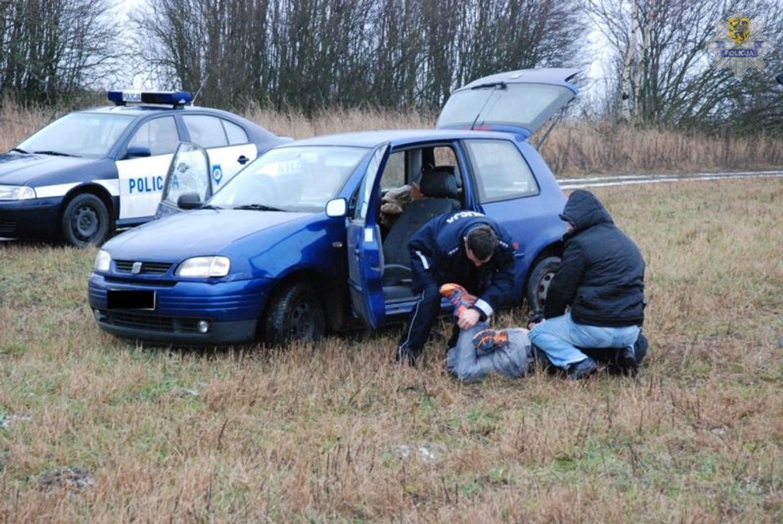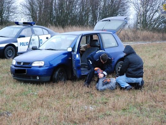 Funkcjonariusze w rejonie miejscowości Kiełpinem zablokowali uciekający samochód i uniemożliwili mu dalszą ucieczkę. Kierowca nie reagował na żadne polecenia policjantów i nie chciał wysiąść z auta. Jak się później okazało miał ponad 2.5 promila alkoholu w organizmie. Posiadał również sądowy zakaz kierowania wszelkimi pojazdami. Funkcjonariusze sprawdzili samochód w policyjnej bazie danych i okazało się, że tablice rejestracyjne należą do zupełnie innego pojazdu. Kierowca seata nie posiadał również przy sobie dowodu rejestracyjnego, a prawo jazdy stracił w lutym tego roku.