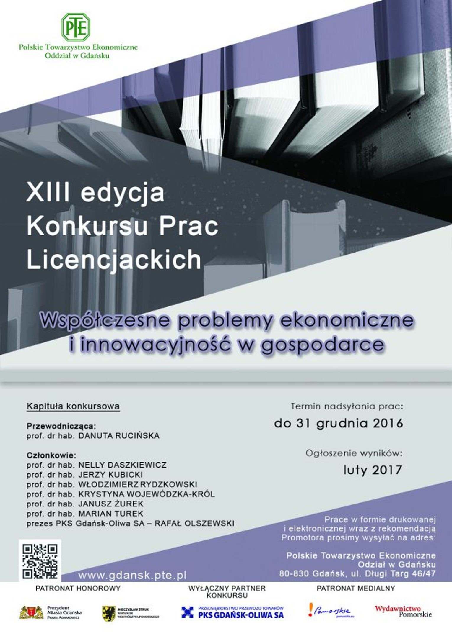 Spośród nadesłanych do Polskiego Towarzystwa Ekonomicznego w Gdańsku prac magisterskich i licencjackich, Kapituła Konkursowa, w której zasiadają profesorowie wyższych uczelni z terenu Trójmiasta, wyłoni te, które będzie można określić mianem innowacyjnych, nieszablonowych i łamiących dotychczasowe schematy.
