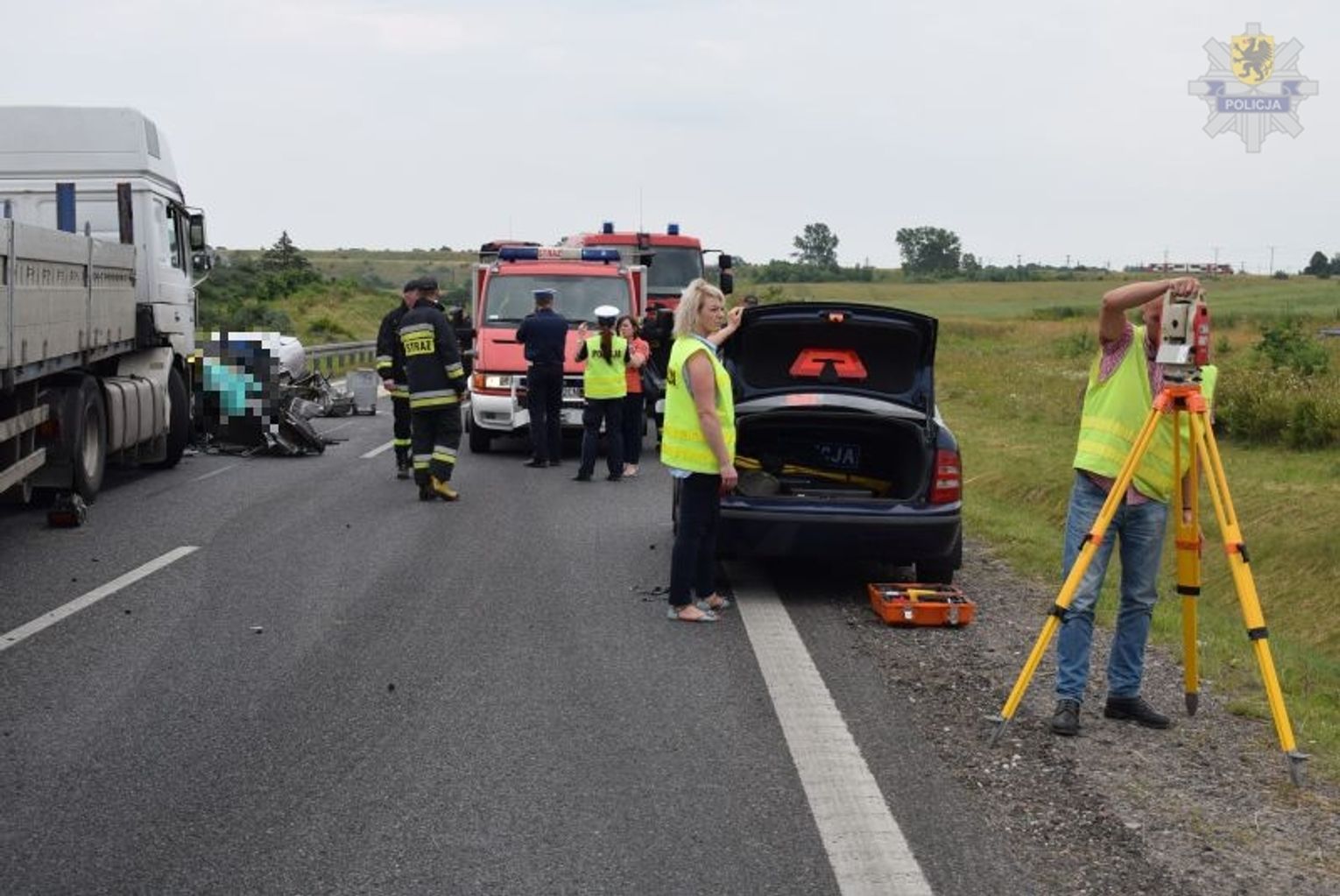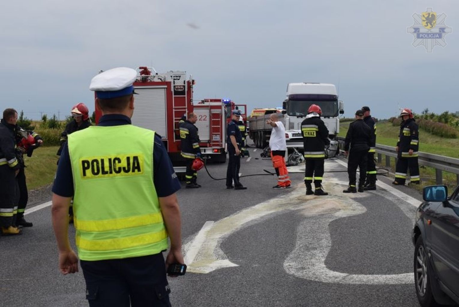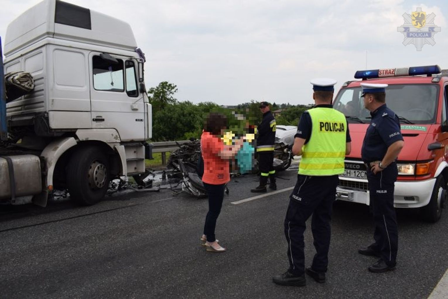 Na miejscu zdarzenia policjanci przez ponad 4 godziny pracowali wspólnie ze strażakami, prokuratorem i technikami kryminalistyki. Pozostałe patrole, prowadziły objazdy dla kierowców pojazdów ciężarowych i osobowych, a ponadto oficer prasowy przekazywał na bieżąco informacje o utrudnieniach do stacji radiowych i portali internetowych dzięki czemu pomimo tak długiego czasu zamknięcia drogi krajowej ruch odbywał się płynnie.