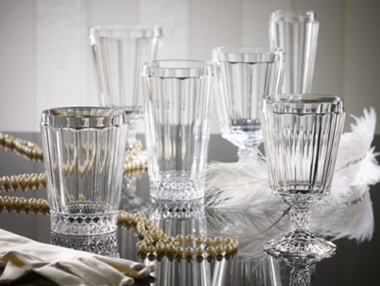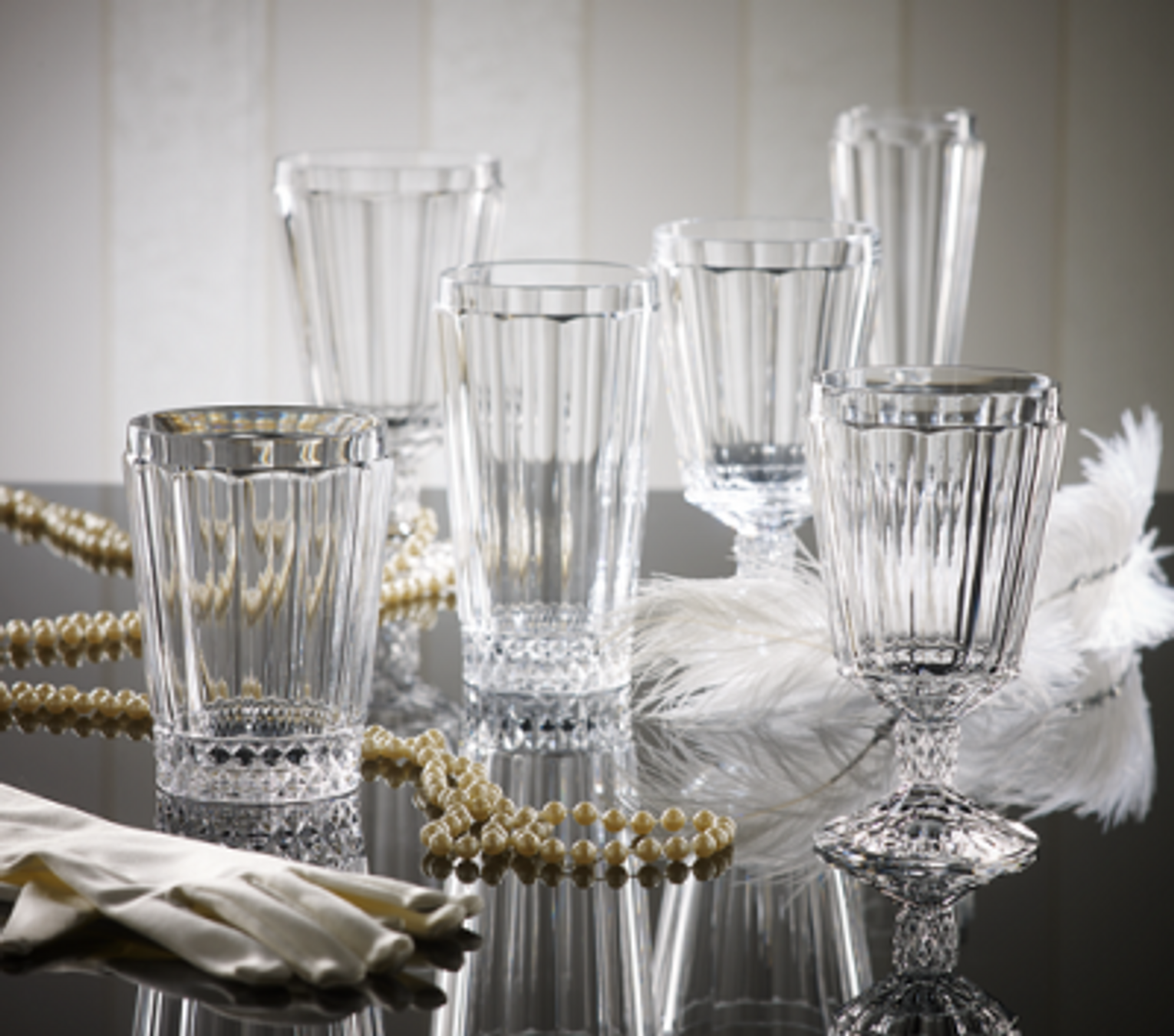 Szklane elementy zastawy są wykonywane ze szkła i szkła kryształowego. Kieliszki, wazony, półmiski i głębokie talerze, to elementy, które znajdują się w niejednym domu. M ożna długo wybierać w zestawach kieliszków. Najbardziej znanymi są Maxima, La Divina, Octavie, Purismo czy Allegorie Premium. Dodatkowo, ze szkła wykonywane są także patery, klosze, pojemniki i elementy uzupełniające zastawę (np. w New Wave).