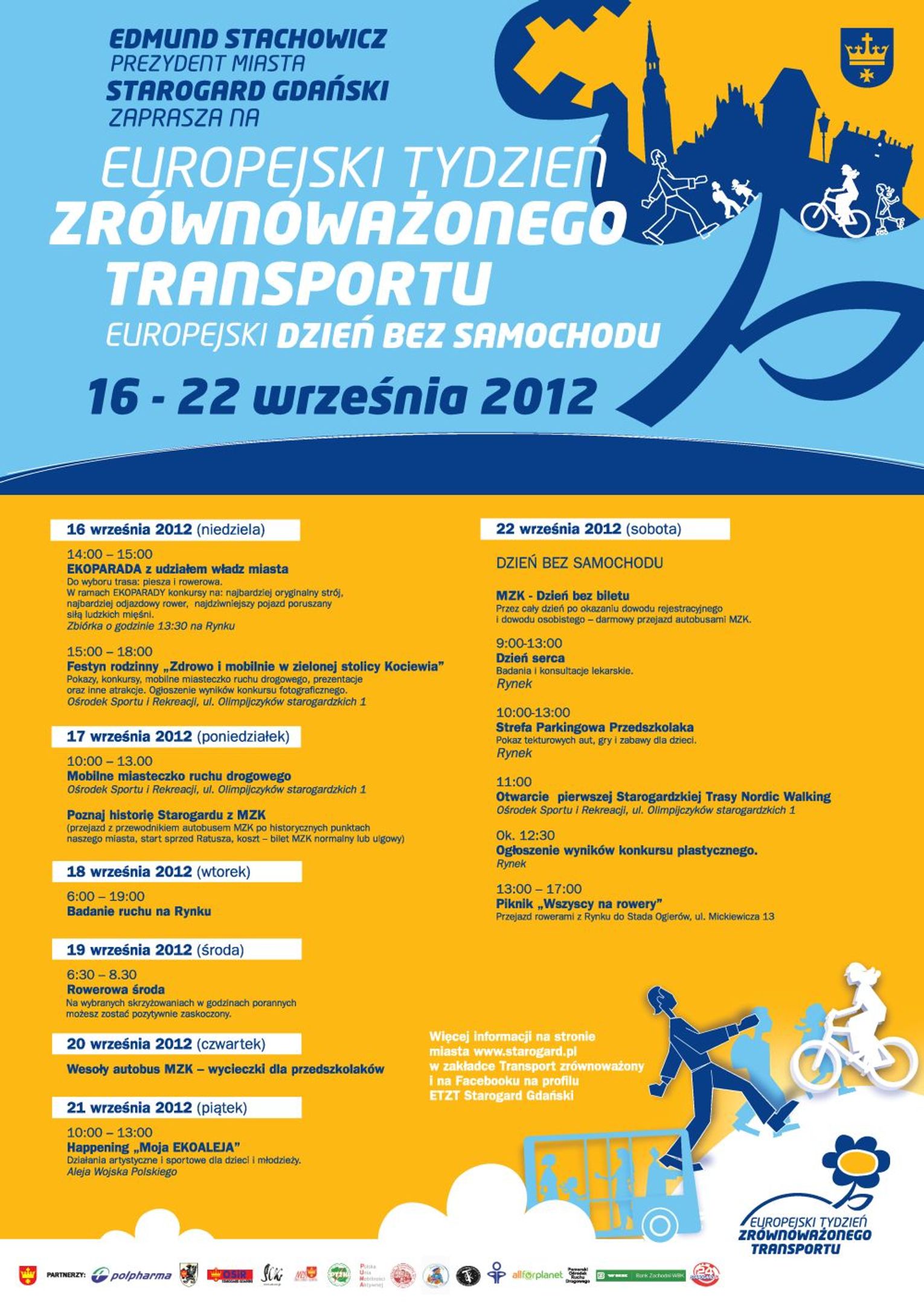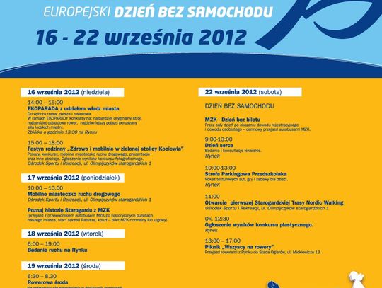 - Europejski Tydzień Zrównoważonego Transportu funkcjonuje właściwie od 2002 r. Jest to projekt zainicjowany przez komisję europejską i trwa do dziś. Straogard bierze udział w obchodach tego tygodnia od kilku już dobrych lat. To są zawsze te same daty, od 16 do 22 września i zawsze ostatni dzień tego tygodnia to dzień bez samochodu. Plakaty z programem zostaną rozwieszone w mieście, będą dostępne w różnych instytucjach, zostaną również rozesłane indywidualne zaproszenia. Chcemy po prostu, aby w tym wydarzeniu wzięło udział wiele osób, ale też wiele osób znanych. Ideą jest by mieszkańcy miast nie zrezygnowali całkowicie z samochodu, ale by korzystali z innych środków transportu. To może być komunikacja zbiorowa, może być rower, jeżdżenie również na rolkach. Jeżeli już trzeba jechać samochodem, to najlepiej robić to w bardziej ekonomiczny sposób. Nie jeździć np. samemu, tylko umówić się w kilka osób. Nie „palić gum” na starcie, jak to czasami bywa, tylko jeździć ekonomicznie. Zresztą sprzyja to kierowcy, mniej zużywa się samochód, mniej także spala się paliwa. Modna ostatnio tzw. ekojazda to nie jazda na rowerze, to właśnie ekologiczna jazda samochodem poprzez zastosowanie tych kilku zasad.