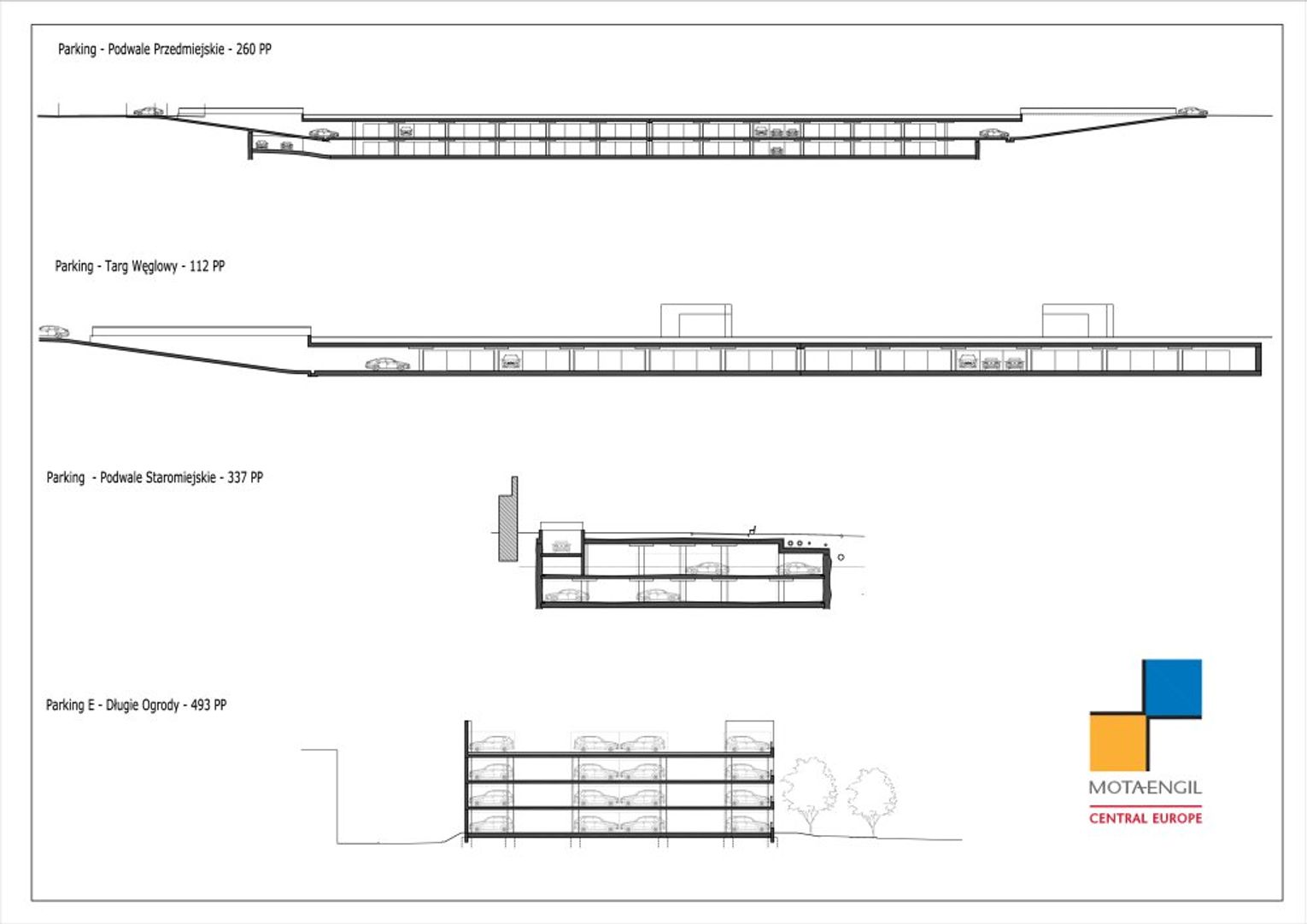 - Przy Długich Ogrodach powstanie czteropoziomowy, nadziemny parking dla 493 pojazdów – obecny parking terenowy między Podwalem Przedmiejskim a Redutą Żbik
