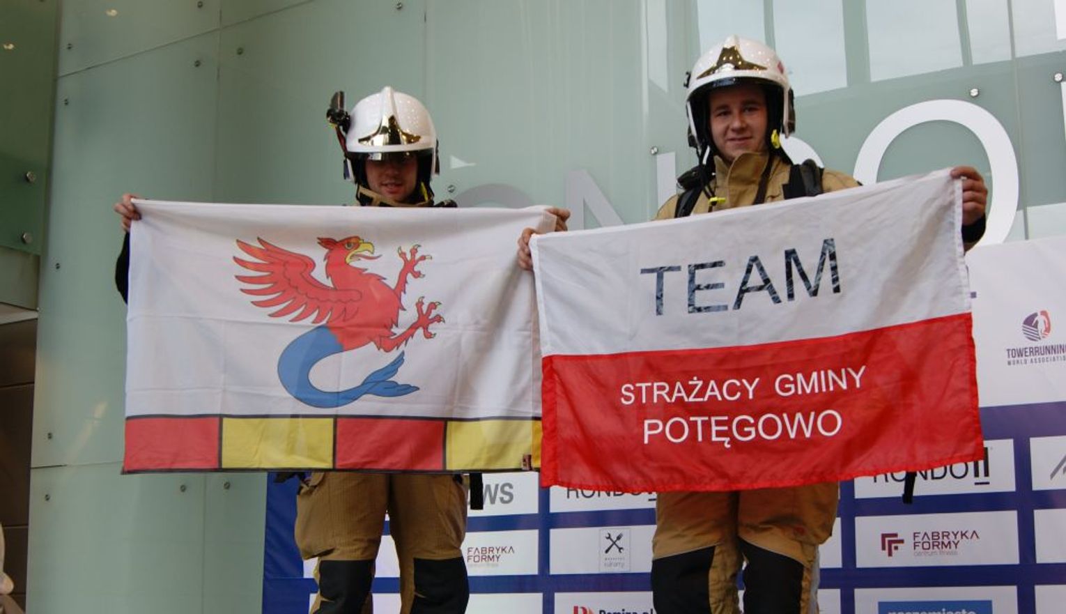 W biegu na szczyt biurowca uczestniczyli druh Paweł Kostecki z Ochotniczej Straży Pożarnej w Potęgowie oraz druh Mateusz Chwal z OSP w Łupawie.