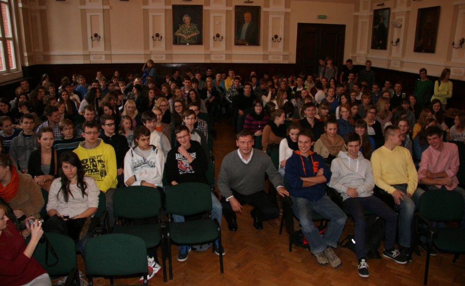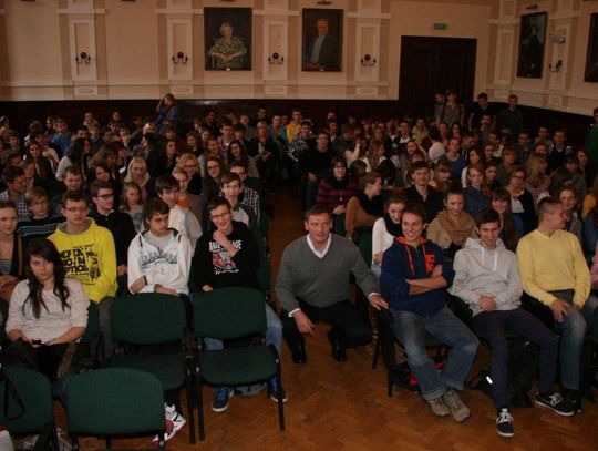 Spotkanie zorganizowali Patryk Gabriel i Jacek Toczek (trener Pawła w SKS-ie). Salę szczelnie wypełnili uczniowie I LO oraz uczniowie i siatkarze z II LO.