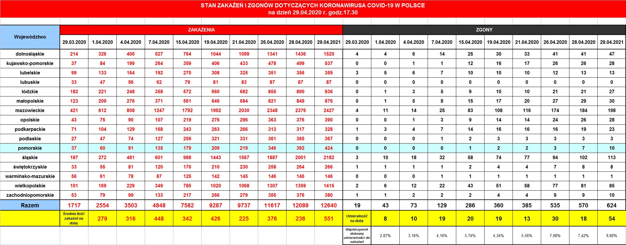 W województwie pomorskim łącznie zakażone są 424 osoby (w ciągu doby wzrost o 32 osoby) i zanotowano 10 zgonów (3 zgony w ciągu ostatniej doby). Poniżej i w załączniku szczegółowa tabela zakażeń o zgonów w Polsce i województwie pomorskim.