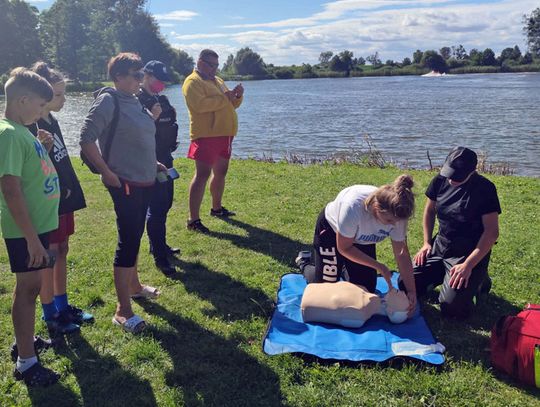 - Celem przedsięwzięcia było podniesienie świadomości plażowiczów na temat bezpiecznego i odpowiedzialnego wypoczynku nad wodą. Zainteresowani, po wcześniejszym instruktażu przeprowadzonym przez strażaków, mieli okazję spróbować swoich sił z zakresu pierwszej pomocy i resuscytacji krążeniowo-oddechowej, a także obejrzeć pokaz podejmowania osoby poszkodowanej z wody. Strażacy zaprezentowali również działania z wykorzystaniem specjalistycznego sprzętu oraz łodzi ratowniczej, które wywarły na zgromadzonych ogromne wrażenie. Nie zabrakło rozmów dotyczących zachowania ostrożności i czujności podczas wypoczynku nad wodą, kąpieli czy uprawiania sportów wodnych. Jednym z istotnych elementów było także przestrzeganie przed zażywaniem kąpieli w miejscach niestrzeżonych jak i zwracanie szczególnej uwagi na znajdujące się nad wodą dzieci – relacjonuje str. Katarzyna Barańska z Komendy Powiatowej Państwowej Straży Pożarnej w Kwidzynie.