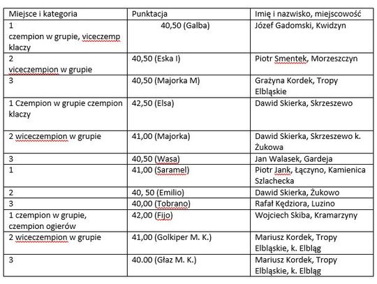 W tabeli przedstawiamy wyniki: trzy pierwsze miejsca z czterech kategorii.