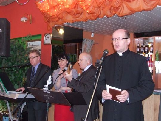 Ksiądz J. Lipski złożył wszystkim obecnym serdeczne życzenia, dodając, że tu, wolne miejsce przy stole nie jest dla niespodziewanego gościa, a przypomina o tych co odeszli. Bo z roku na rok grono kombatantów jest coraz mniejsze. Tych których nie ma już wśród nas uczczoną modlitwą. Po odczytaniu ewangelii wg św. Łukasza zebrani podzieli się opłatkiem i zasiedli do poczęstunku.