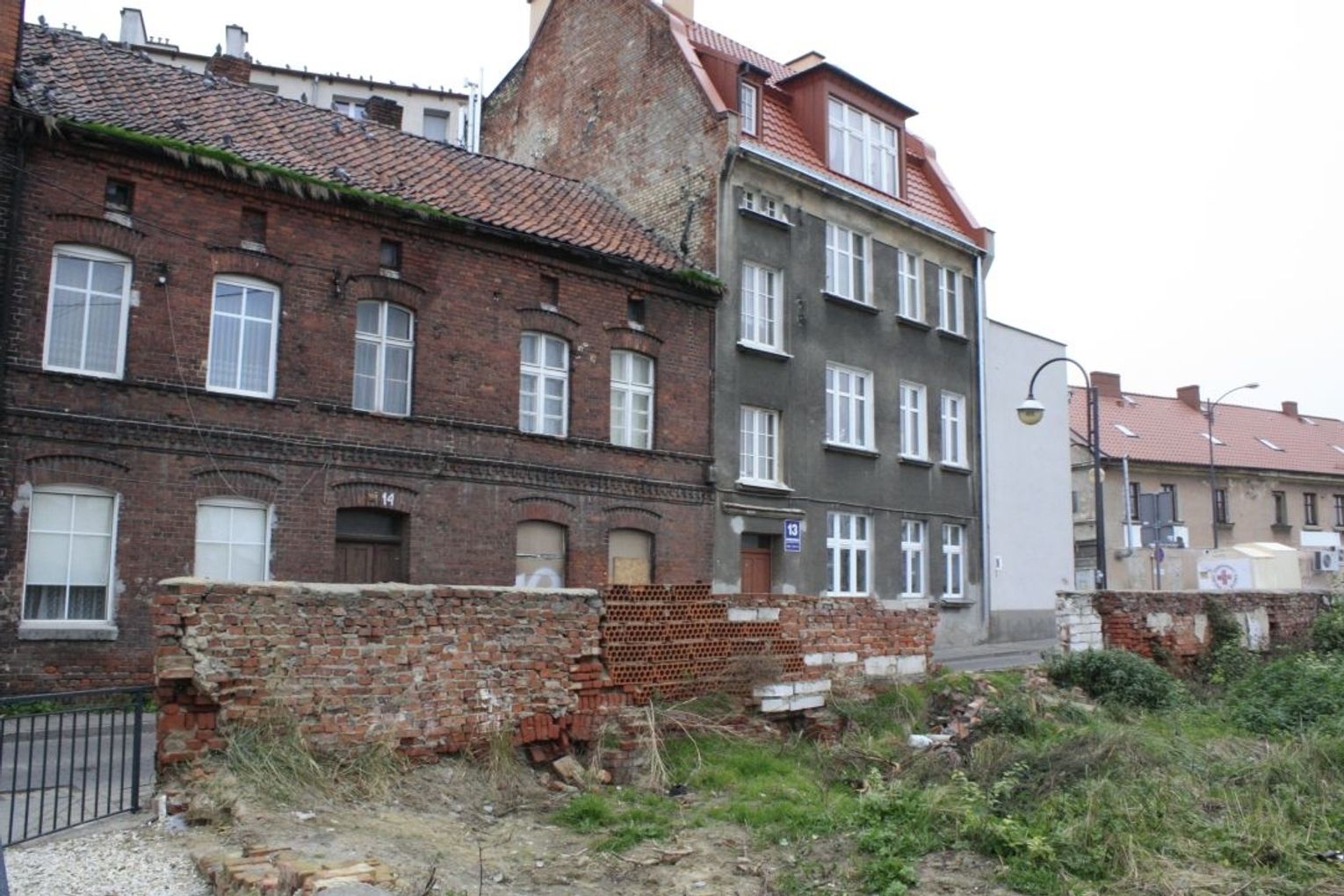 Kolejna mała architektura odwiedzana przez nas mieści się na ul. Krętej. I znowu od strony ul. Ogrodowej zarośnięty teren po spalonym budynku mieszkalnym, gdzie obok była lata temu, całkiem niezła pizzeria. Teraz to obrys dawnych zabudowań ze śmieciami i porozrzucanymi cegłami w środku. Po drugiej stronie kolejne szpetne kamienice. Jedną z nich podejrzewamy o „bycie pustostanem”.