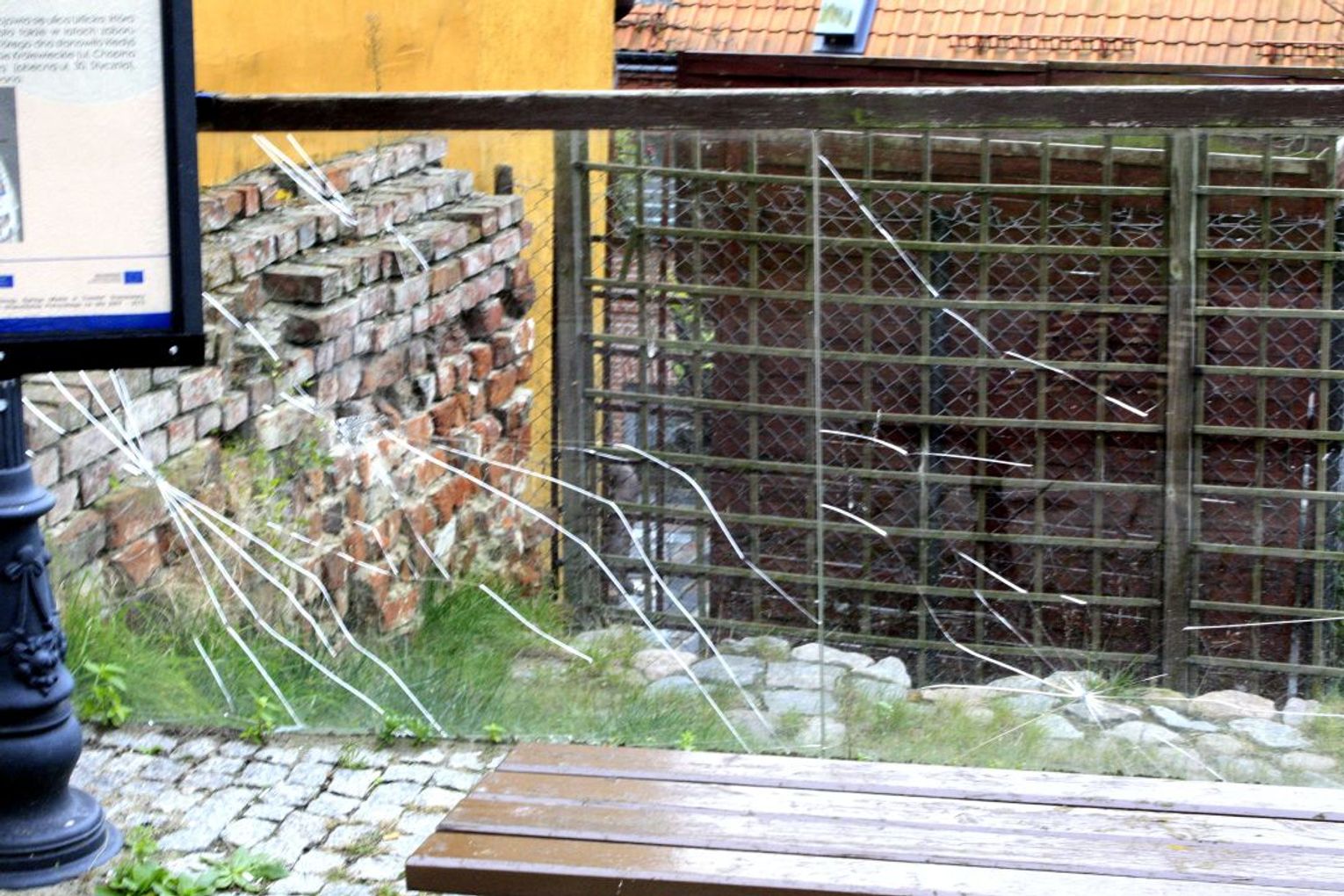 O to co widać na ul. Rybackiej nie możemy mieć pretensji do miejskich urzędników. Popękane (ale jeszcze nie wybite) pleksi oddzielające skarpy ulice i schody, to dzieło miejscowych wandali, którzy kopnięciem lub kamieniem uszkodzili te bariery. Idąc dalej zauważymy zabytkowy mur pokryty kolejnym pseudo graffiti. Szlak forteczny to ciekawie pomyślana inicjatywa turystyczna, lecz zaniedbana. Pomijając bazgroły na odbudowanej części muru miejskiego, zaraz obok natkniemy się na pozostałość po lampie miejskiej lub reflektorze z odsłoniętymi kablami, co powoduje realne zagrożenie dla bezpieczeństwa. Dalej niestety szlak wiedzie wzdłuż szpetnych, zaniedbanych ścian budynków, które z drugiej strony prezentują się (co zadziwiające ze względu na ich tyły) całkiem nieźle.