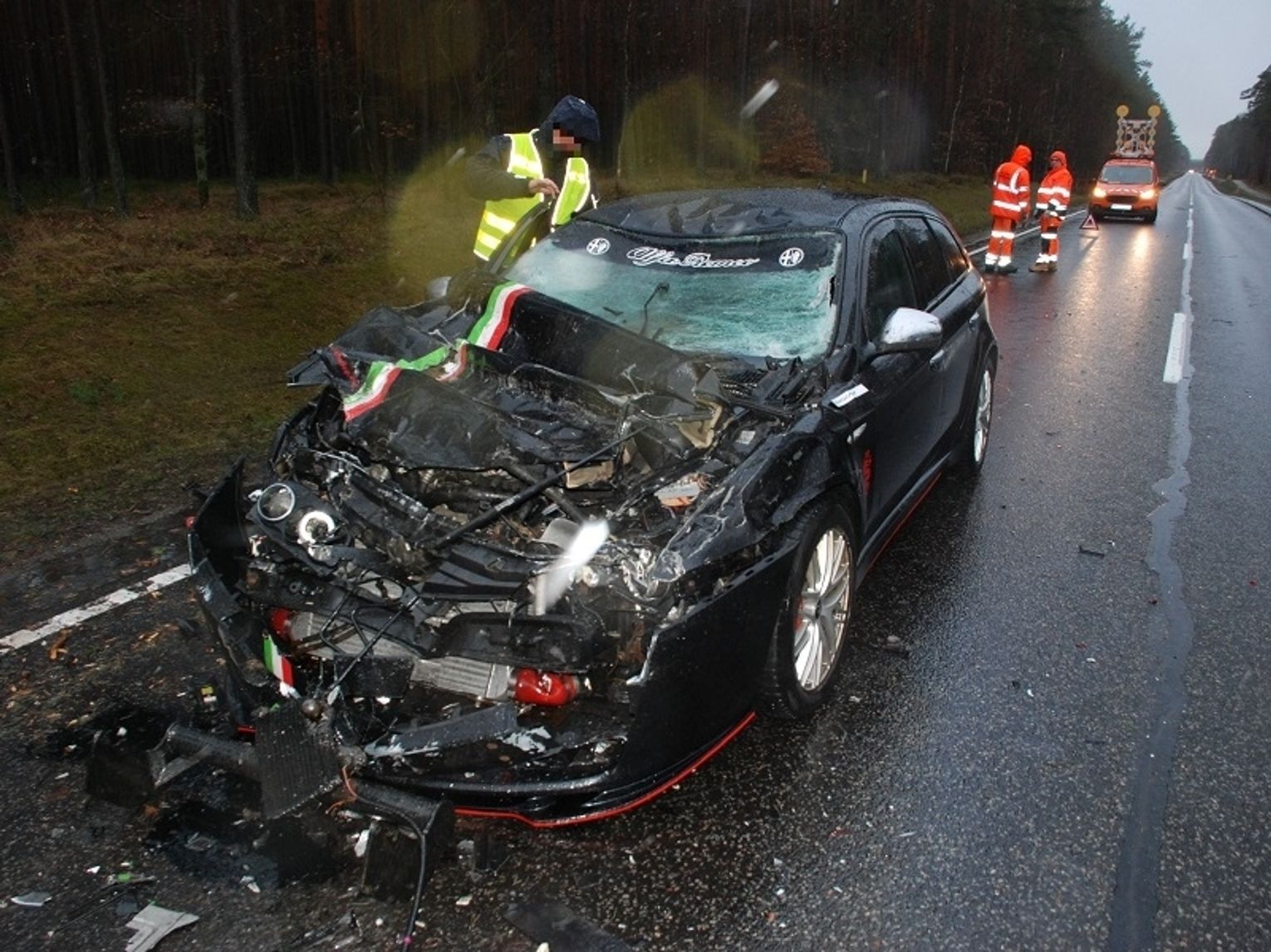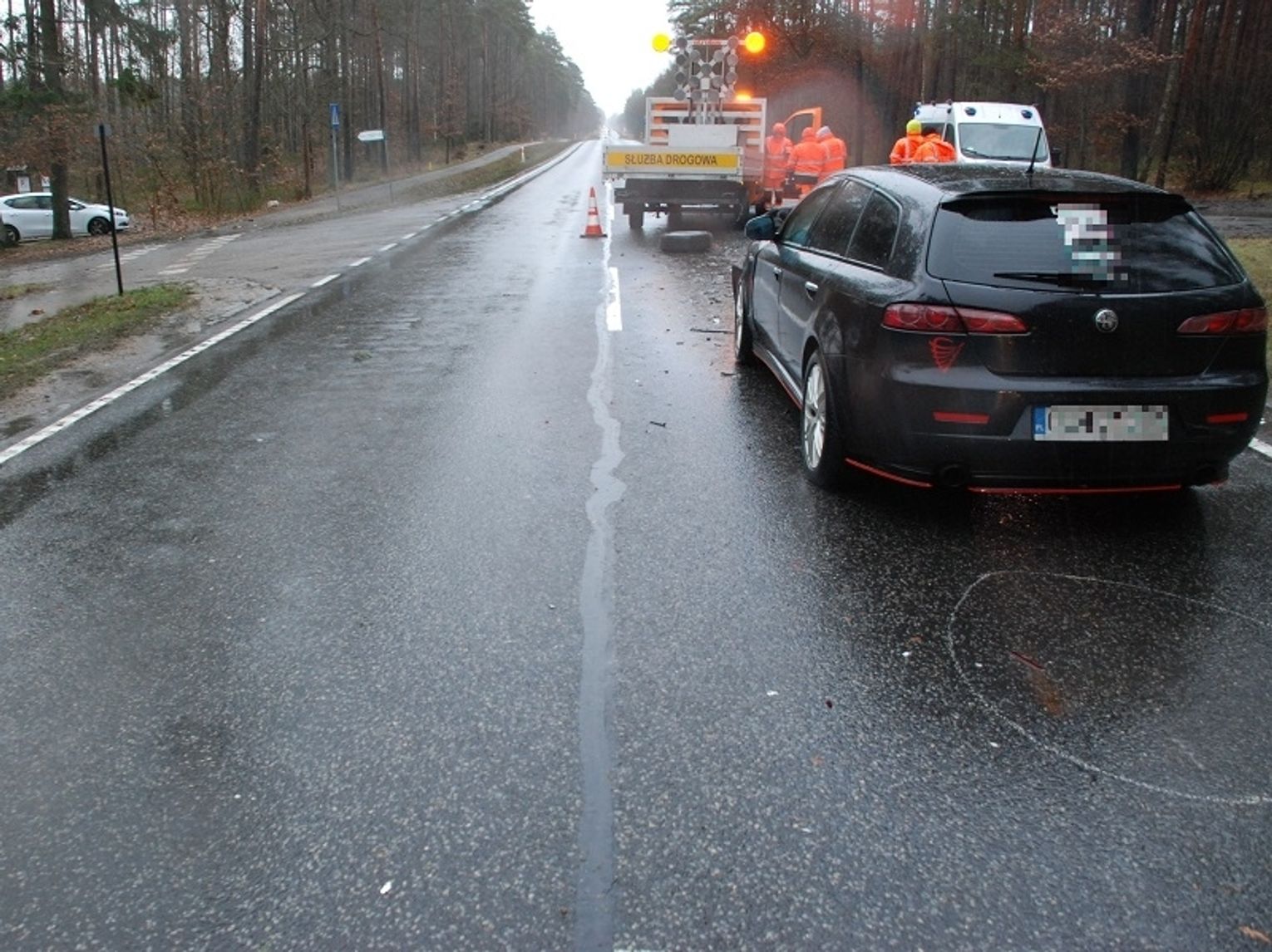 Policjanci z Człuchowa pracowali wczoraj (30 stycznia) o godzinie 07.50 przy zdarzeniu dwóch aut miedzy Człuchowem a Paromierzem. Funkcjonariusze pracujący przy zdarzeniu ustalili, że w tym dniu pracownicy służby drogowej sprzątali drogę z gałęzi zalegających na jezdni i poboczu po nocnej wichurze i w ich prawidłowo zaparkowany i oświetlony samochód marki Ford najechał 24-letni- mieszkaniec Czerska kierujący osobową alfą romeo. Prawdopodobnie z uwagi na zmęczenie po długiej podróży kierowca alfy nie zauważył stojącego, częściowo na poboczu dobrze oświetlonego forda służby drogowej. Pracownikom sprzątającym drogę nic się nie stało, natomiast kierowca osobówki trafił z obrażeniami do szpitala. Wszyscy uczestnicy zdarzenia byli trzeźwi, funkcjonariusze zabezpieczyli miejsce zdarzenia, przeprowadzili oględziny i kierowali ruchem.