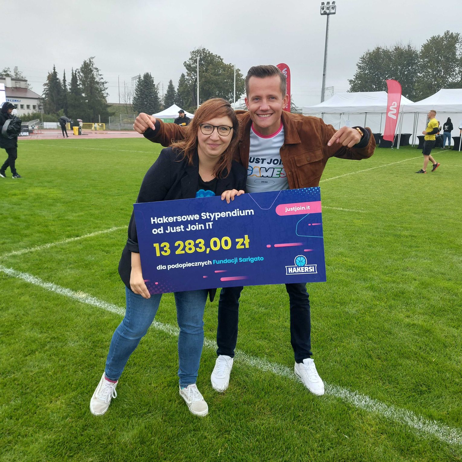 Biorąc udział w zmaganiach, uczestnicy mogli wesprzeć także szczytny cel. Część środków ze sprzedaży pakietów startowych organizatorzy przekazali na cele dobroczynne. Otwierając tegoroczne wydarzenie, Piotr Nowosielski, CEO Just Join IT, przekazał czek na kwotę ponad 13 000 zł dla Fundacji Sarigato, która w ramach akcji Hakersi wspiera dzieci z rodzin wykluczonych cyfrowo.