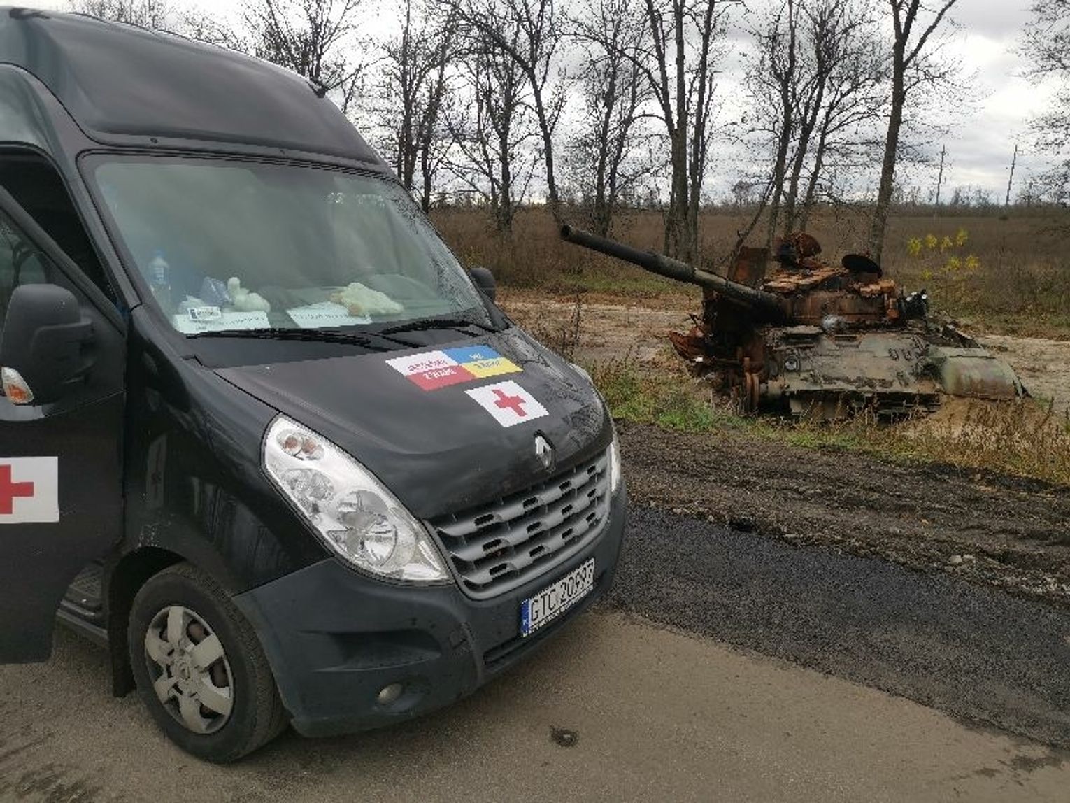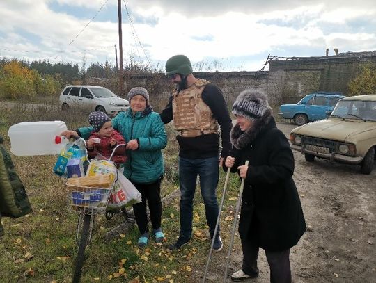 Wsparcie medyczne i żywność dla dzieci przekazaliśmy w punkcie pomocy humanitarnej w Iziumie. Pozostała część pomocy rozdawaliśmy mieszkańcom osobiście, bezpośrednio w zniszczonych wioskach. Potrzeby ludności są bardzo duże, bo Rosjanie wycofali się rabując domy i mieszkania. Szczególnie dotkliwe, wobec zbliżającej się zimy, są zniszczenia domów, infrastruktury grzewczej i elektrycznej. Ludzie nie mają czym ogrzać i oświetlić domów. W trakcie naszego wyjazdu miasta, do których przyjechaliśmy (Charków) były obiektem ataku rakietowego wojsk rosyjskich. Przekazując pomoc zbliżyliśmy się na odległość 20 km od linii frontu, o czym świadczył dobrze słyszalny ostrzał artyleryjski. Teren wokół dróg był często zaminowany, a w ruinach znajdowało się dużo niewybuchów. Nie zmienia to naszego mocnego postanowienia pomocy dla walczącego o wolność narodu ukraińskiego i ofiarom okupacji rosyjskiej. Potrzeby są wciąż ogromne, dlatego planujemy kolejny wyjazd na Ukrainę, o ile uda nam się uzbierać odpowiednie środki finansowe.