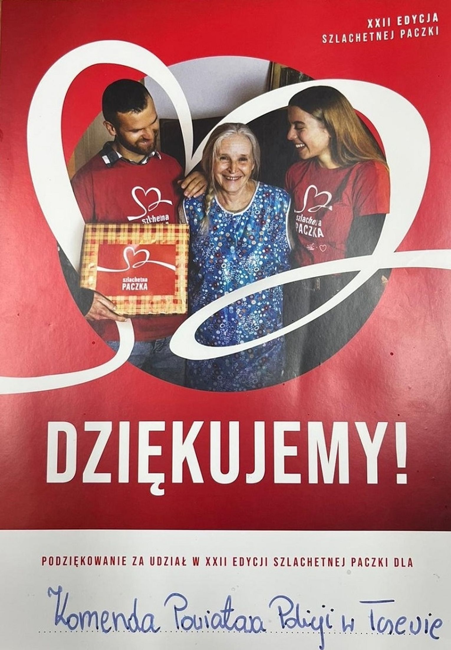 Szlachetna Paczka jest jednym z najbardziej rozpoznawalnych projektów społecznych w Polsce. Jego głównym celem jest materialna pomoc rodzinom i osobom znajdującym się w trudnej sytuacji życiowej. To również piękny, bezinteresowny gest, który przynosi wiele radości, wiary i spokoju, tak ważnych w czasie nadchodzących świąt. Zbiórkę na rzecz rodziny zorganizowała policjantka z Ogniwa ds. Wykroczeń Komendy Powiatowej Policji w Tczewie. Bardzo szybko do inicjatywy włączyli się także funkcjonariusze z pozostałych wydziałów i komórek organizacyjnych oraz pracownicy cywilni. W tym roku pomogli mieszkance Tczewa i jej dwójce dzieci. Rodzina otrzymała wiele przydatnych i potrzebnych upominków, które z pewnością będą wsparciem w ich codziennym życiu. Oczywiście nie zabrakło prezentów, o których dzieci napisały w listach do Świętego Mikołaja.