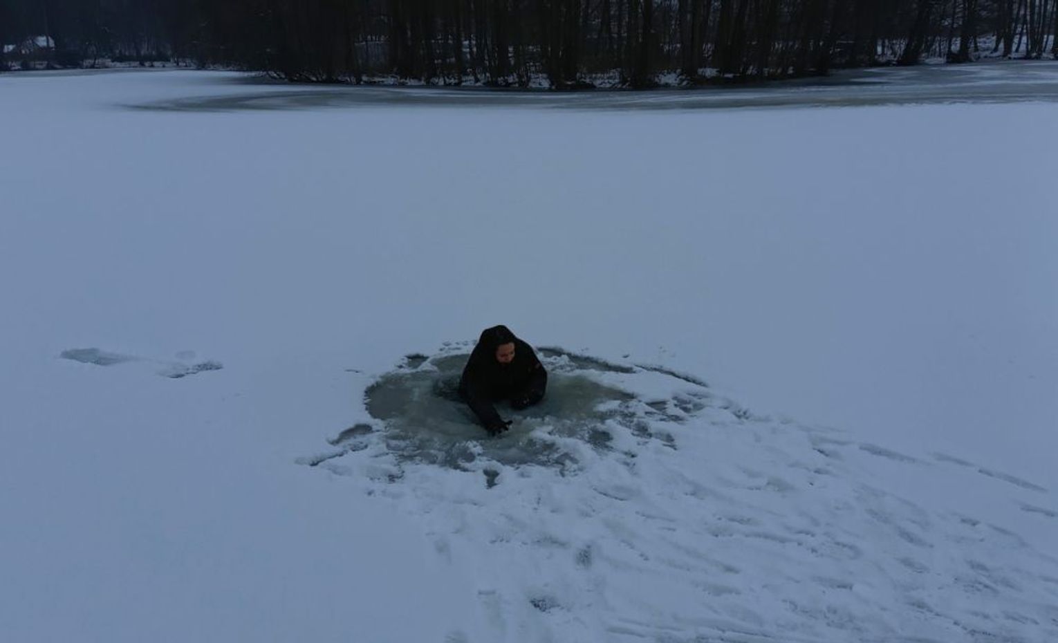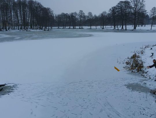 Pamiętajmy, że każde wejście na zamarznięty zbiornik wodny jest ryzykowne, nawet przy bardzo dużym mrozie. Lód ulega ciągłym zmianom, również dobowym i nigdy nie ma tej samej grubości na całym zbiorniku. Poruszanie się po lodzie bez odpowiedniej wiedzy i sprzętu asekuracyjnego może zakończyć się tragicznie.