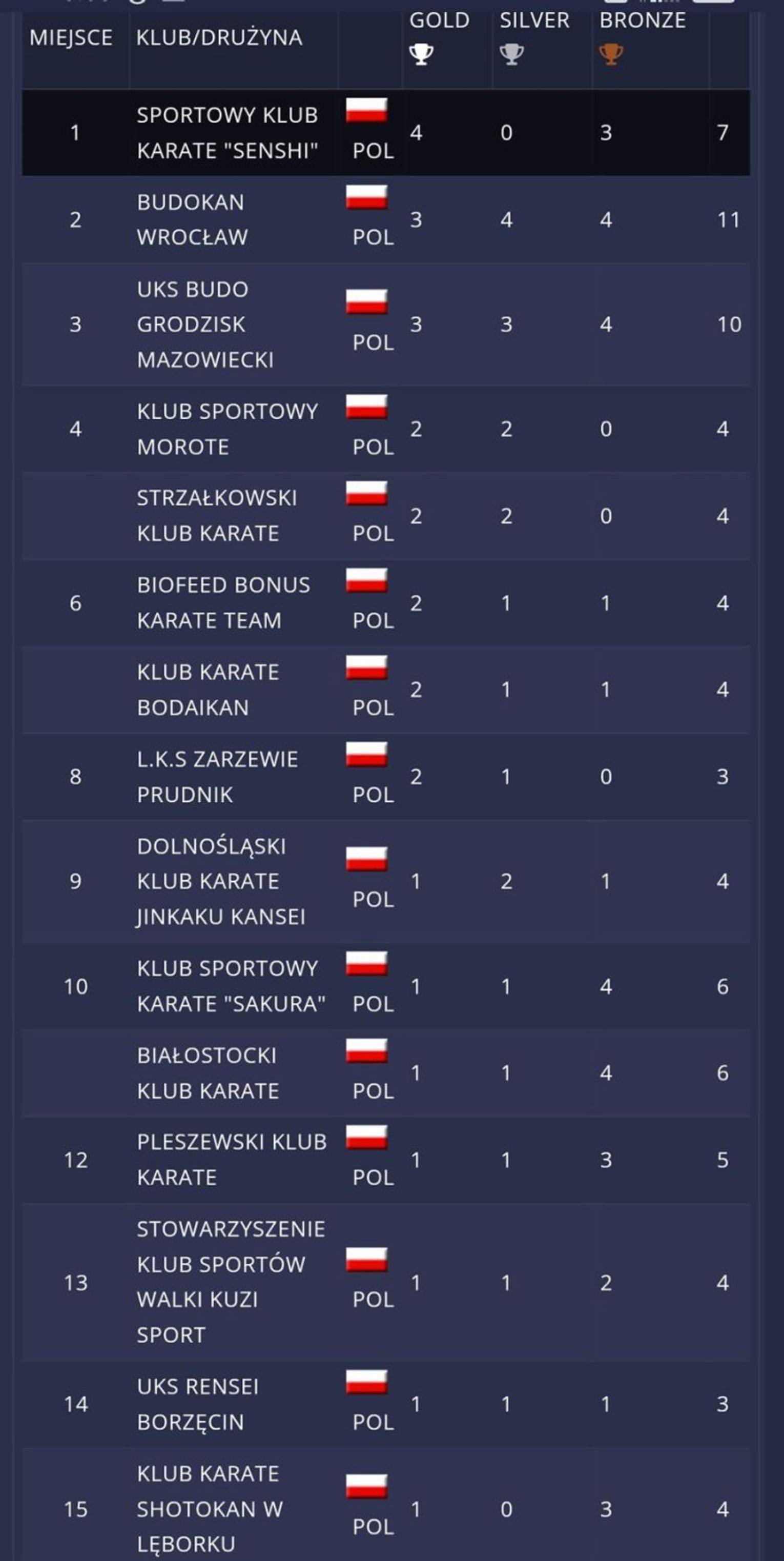 A tak prezentują się wyniki młodzików: