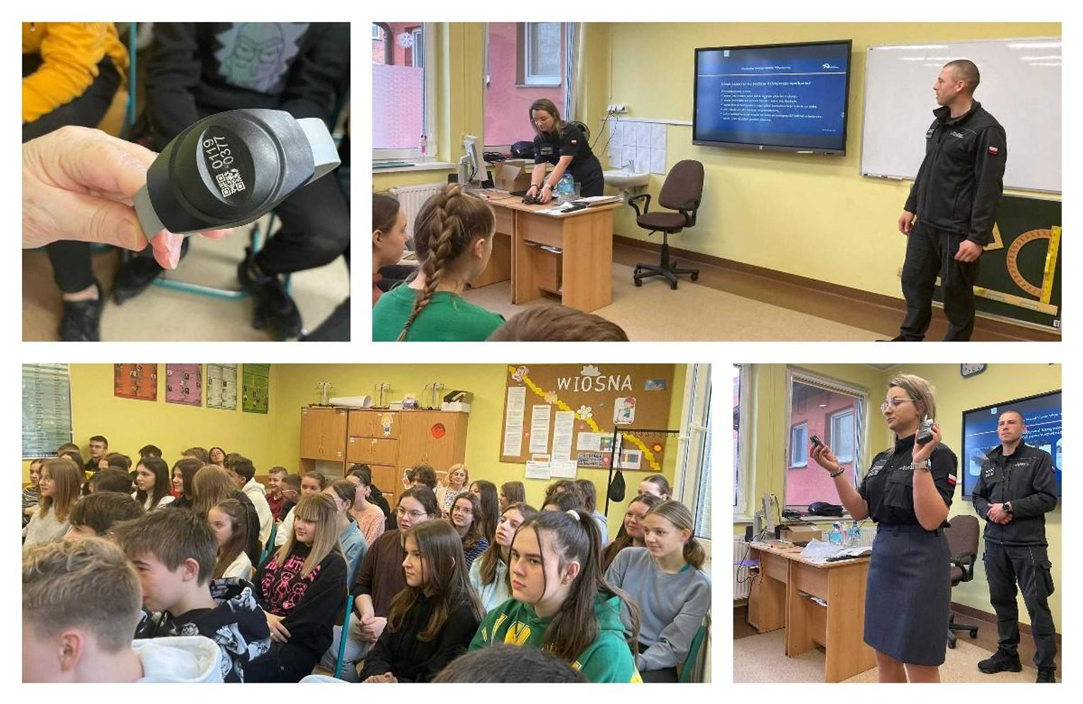 Prowadząca spotkanie - kpr. Magdalena Lass reprezentuje dział systemu dozoru elektronicznego. Zazwyczaj pełni służbę poza wysokimi murami wiezienia, realizując zadania związane z bezpośrednią obsługą tego sposobu wykonania kary dla skazanych. Podczas spotkania z uczniami opowiedziała jak wygląda jej typowy dzień podczas wykonywania zadań służbowych.