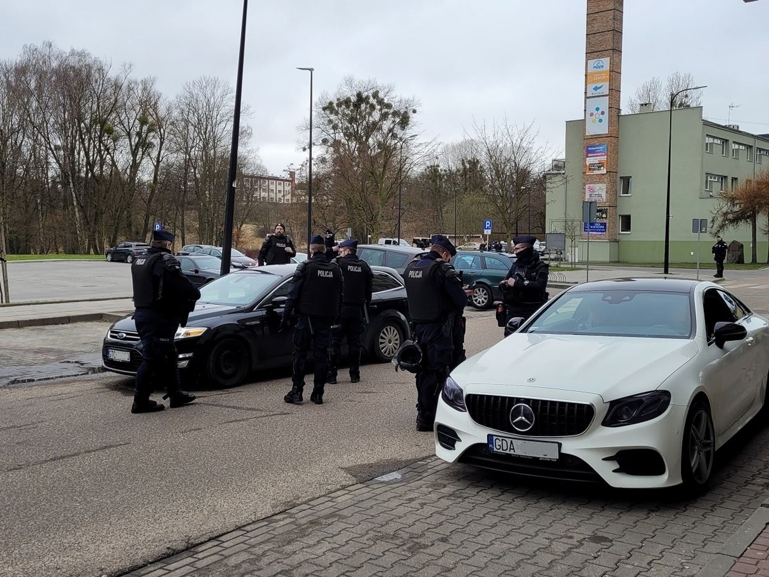 Dziesiątki radiowozów ustawiły się pod dawną halą Agro Kociewie przy ulicy Hallera w Starogardzie Gdańskim. Jak ustaliliśmy, sytuacja ta może mieć związek z ustawką kibiców klubów piłkarskich najprawdopodobniej z Trójmiasta. Na miejscu trwają działania policji, wszystkie samochody są dokładnie sprawdzanie, a kierowcy i pasażerowie sprawdzani w policyjnych systemach.