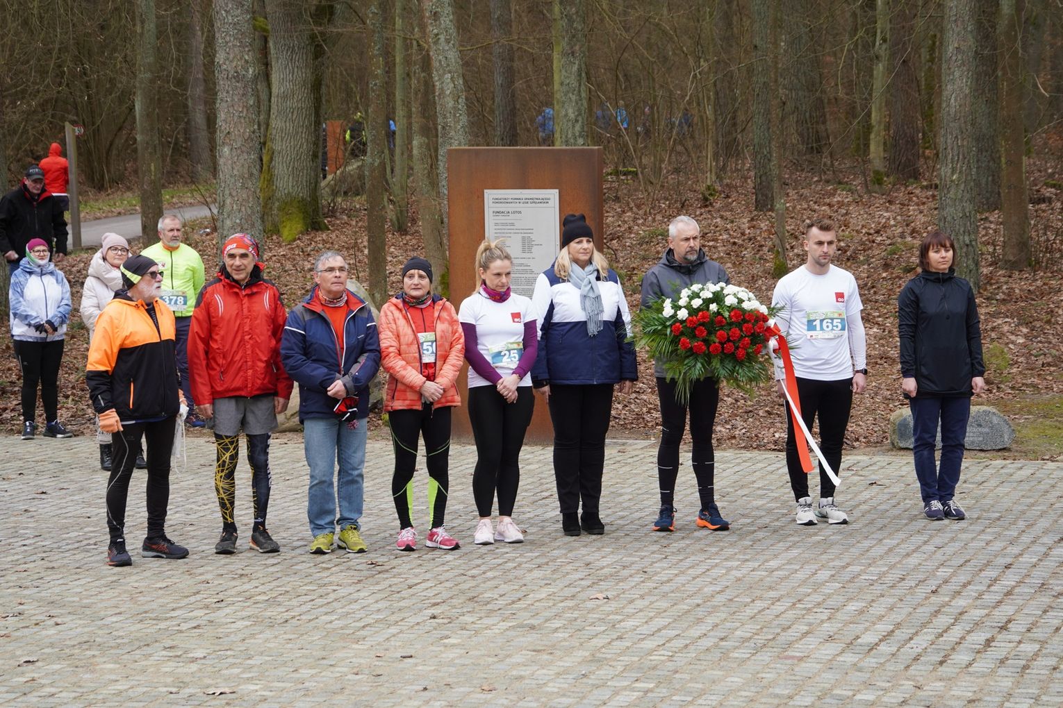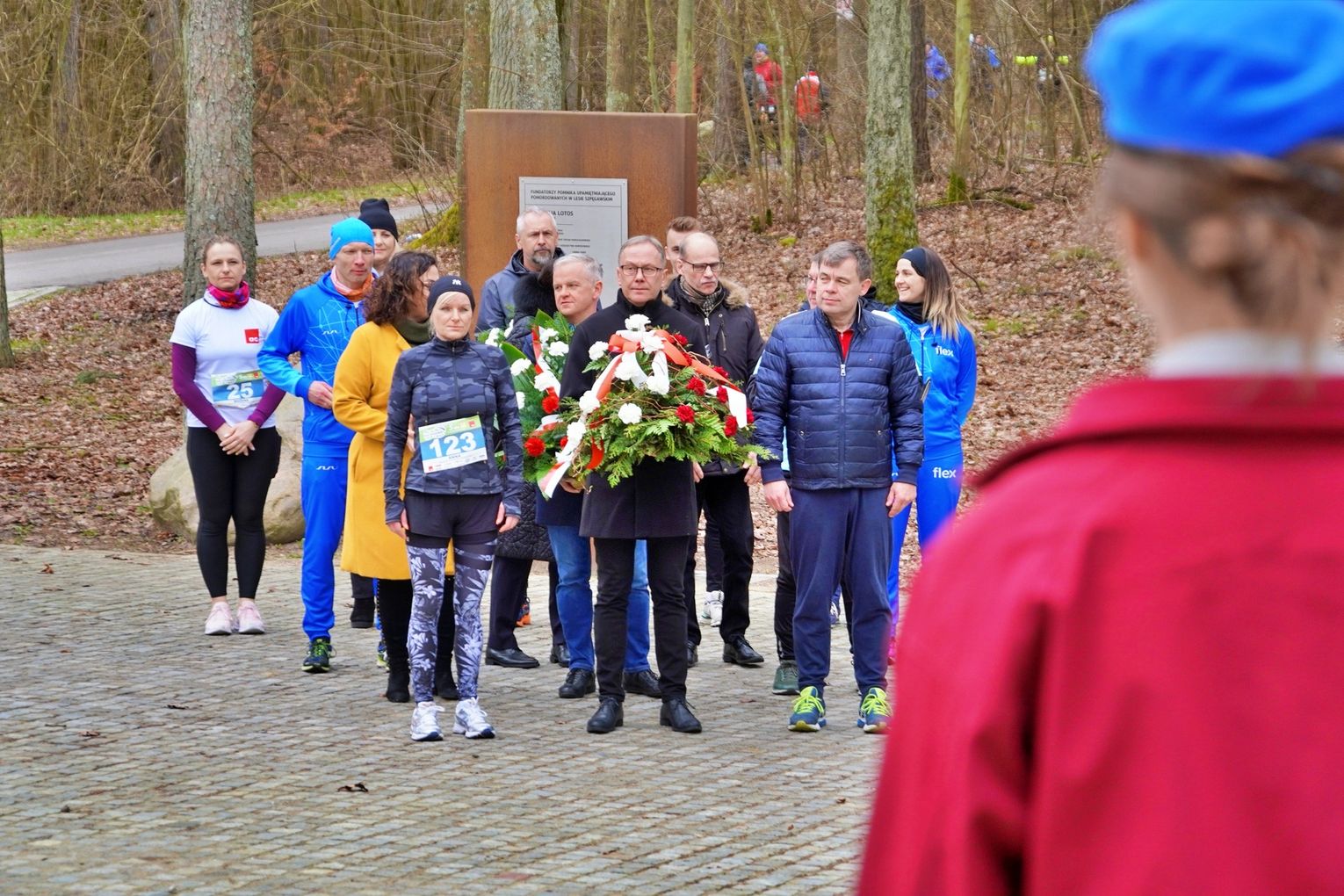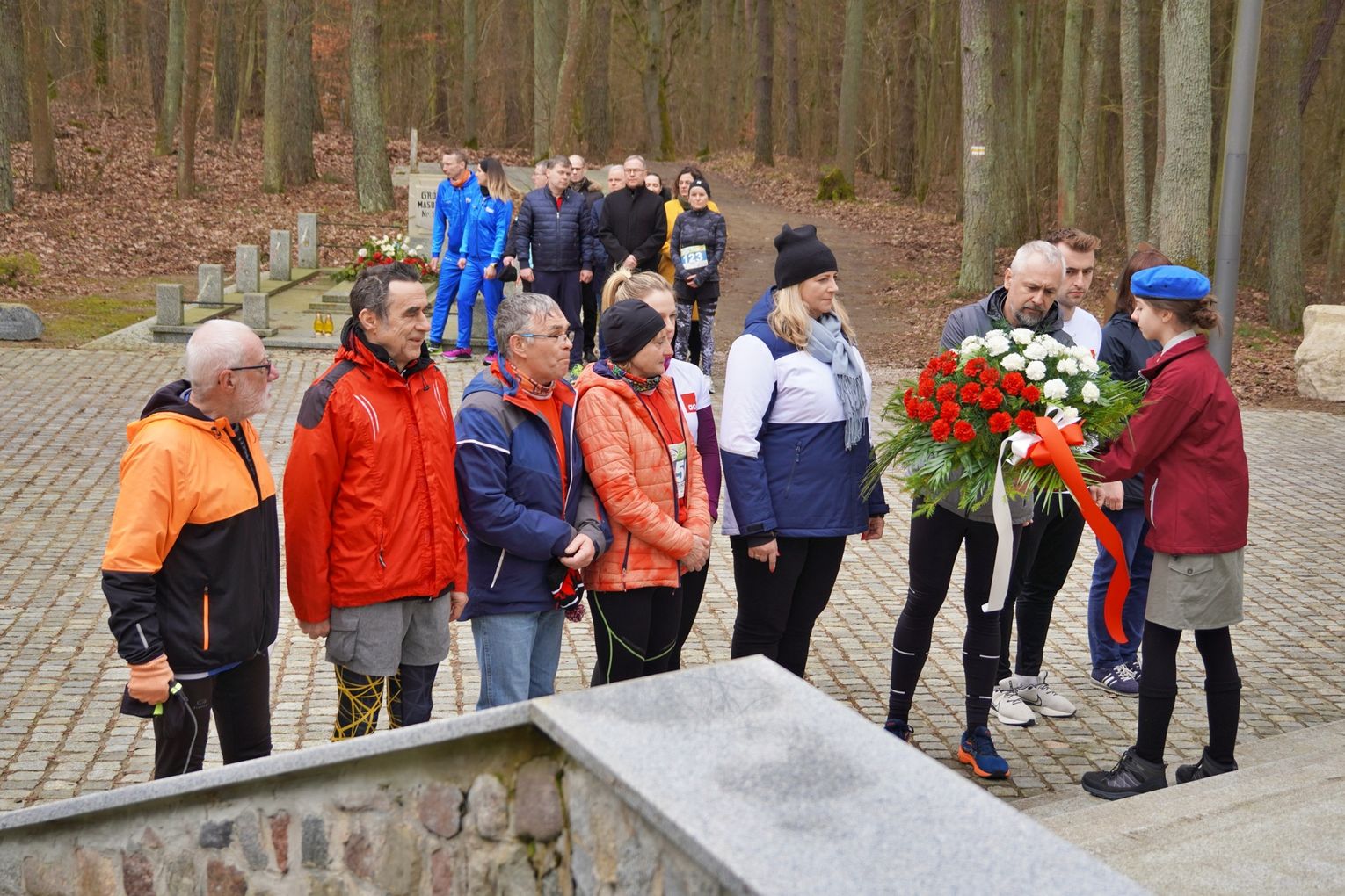 Tradycyjnie tuż przed startem honorowym, delegacje samorządowców, instytucji oraz zawodników aby upamiętnić ofiary zbrodni, złożyły wiązanki kwiatów pod pomnikiem w Lesie Szpęgawskim.