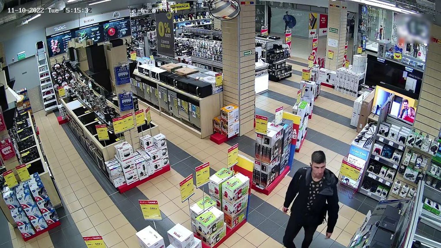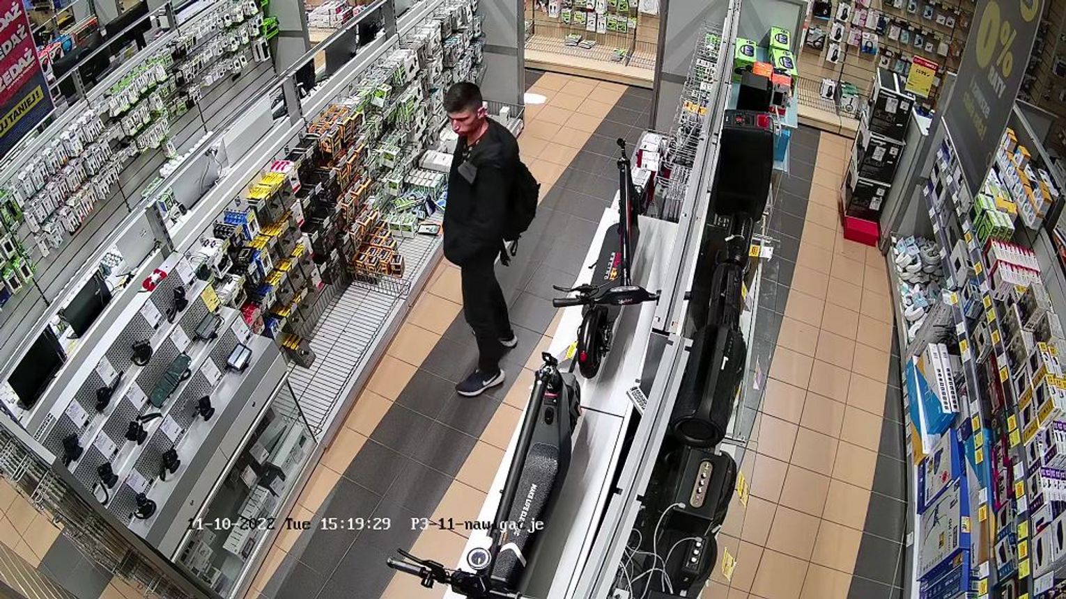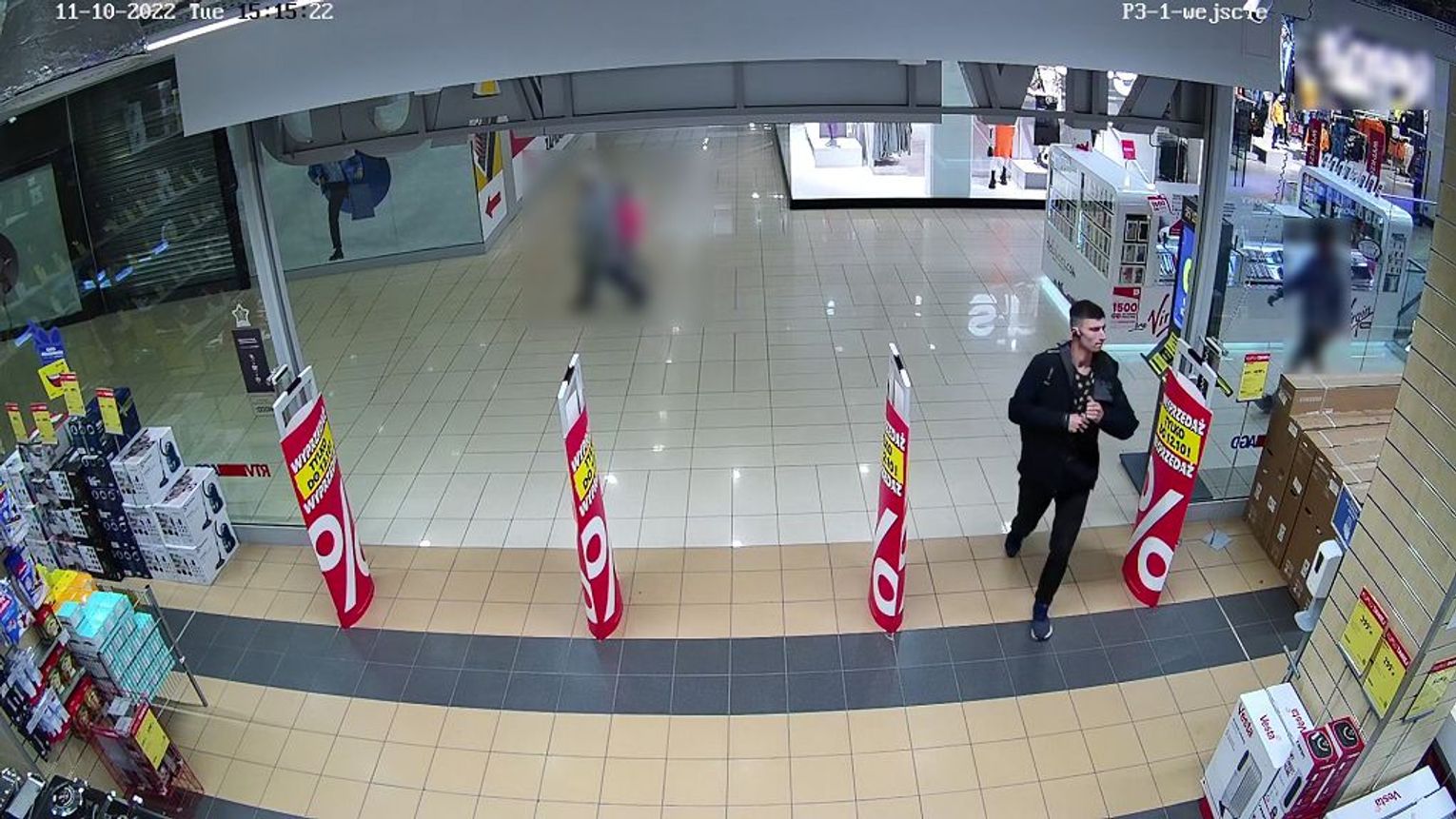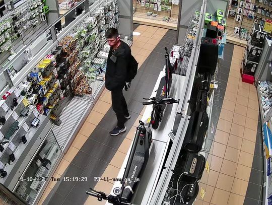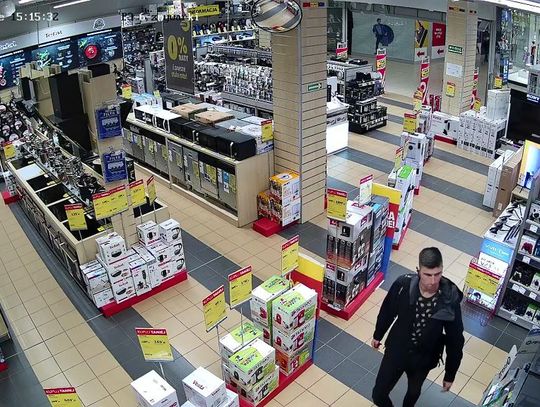 Policjanci z tczewskiej komendy poszukują mężczyzny podejrzewanego o kradzież słuchawek i powerbank z tczewskiego sklepu z elektroniką w dniu 11 października 2022 r.