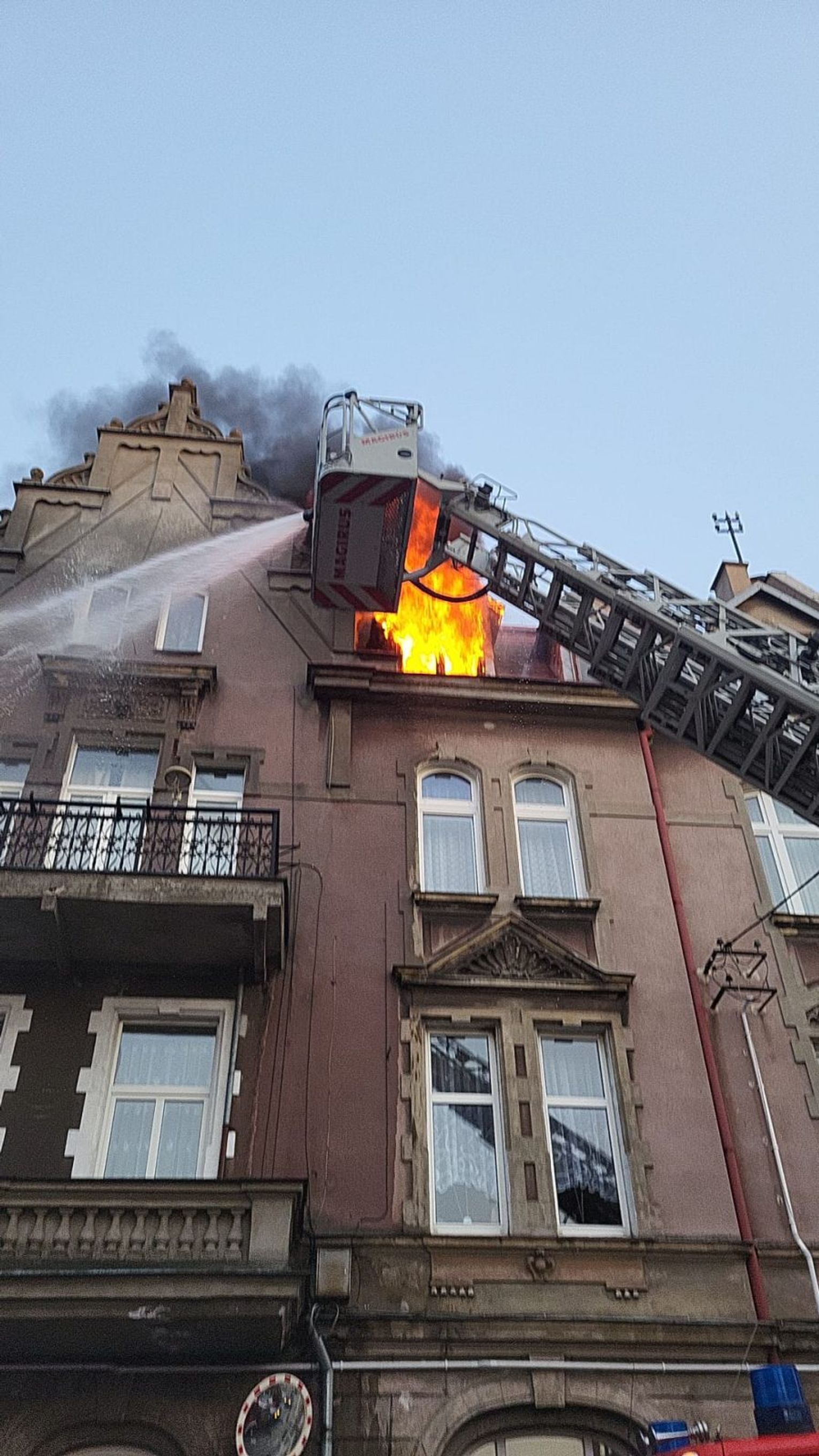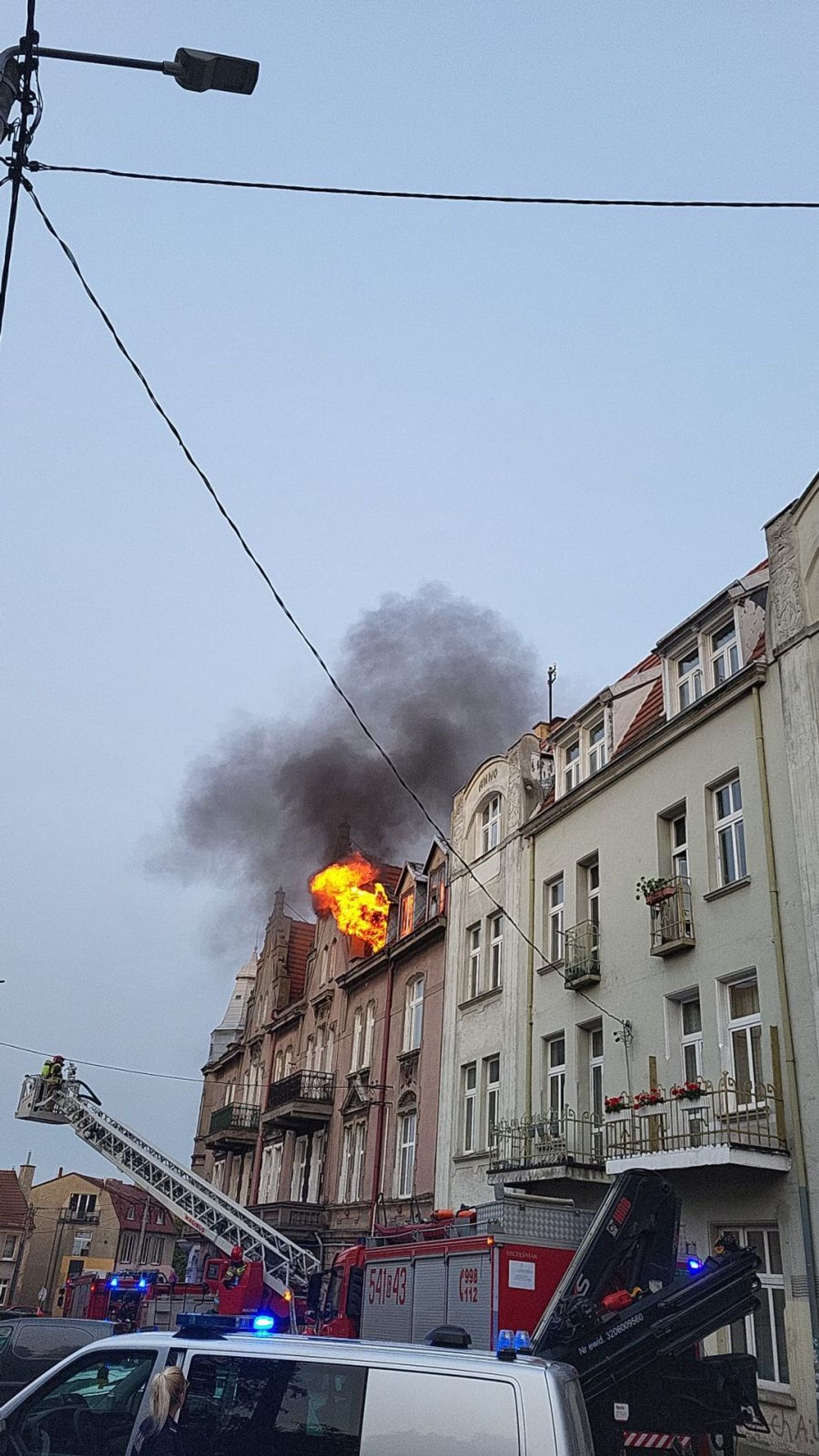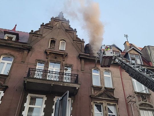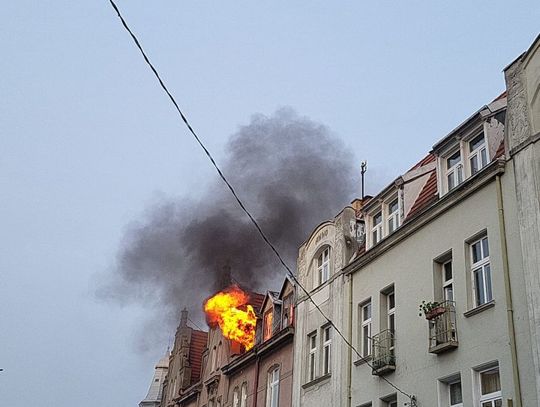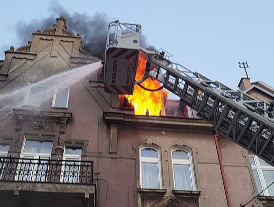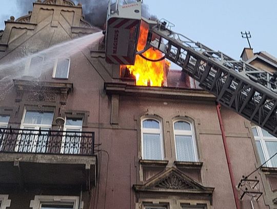 Ok. godz. 20.31 widać było płomienie wydobywające się z najwyższego piętra kamienicy.