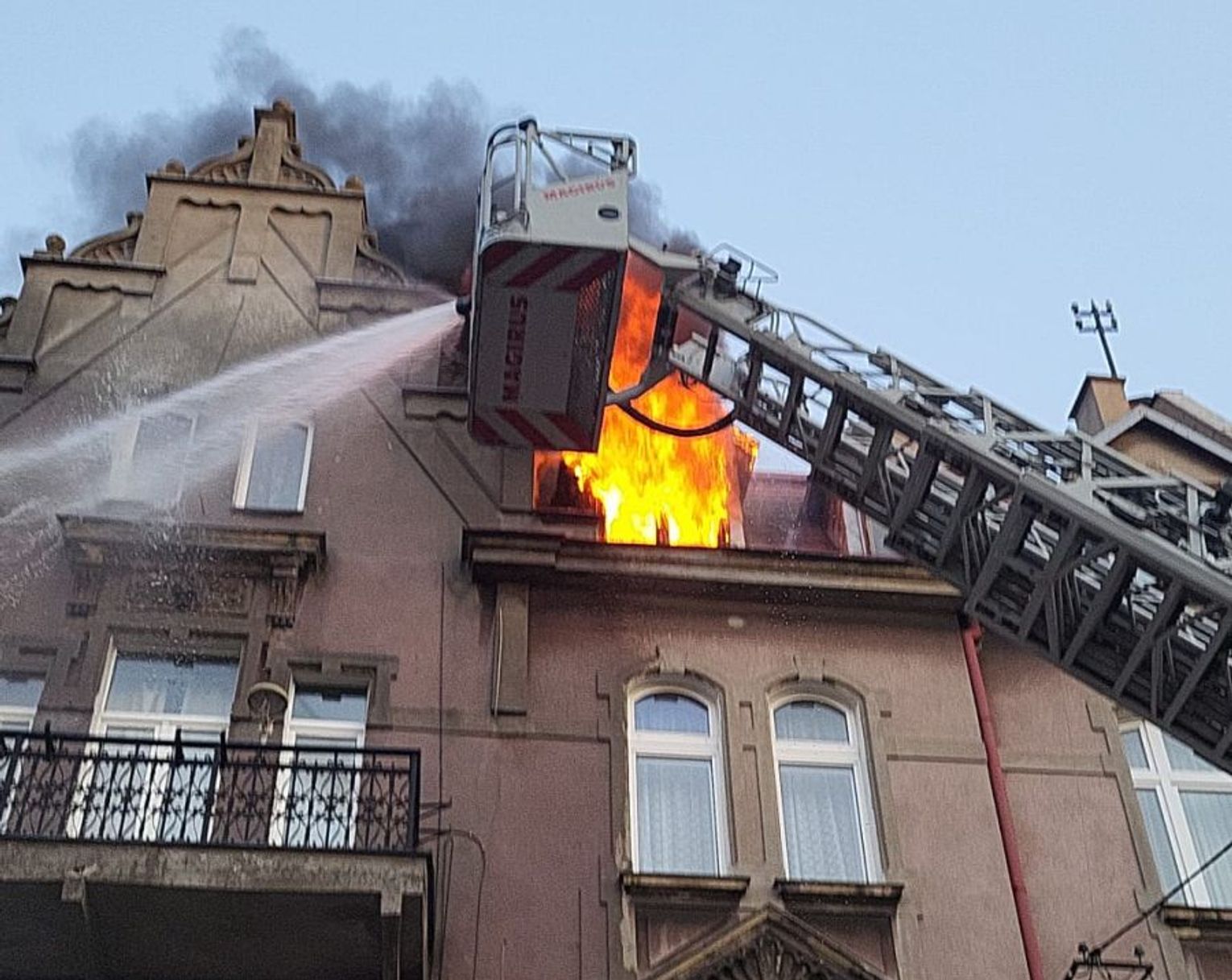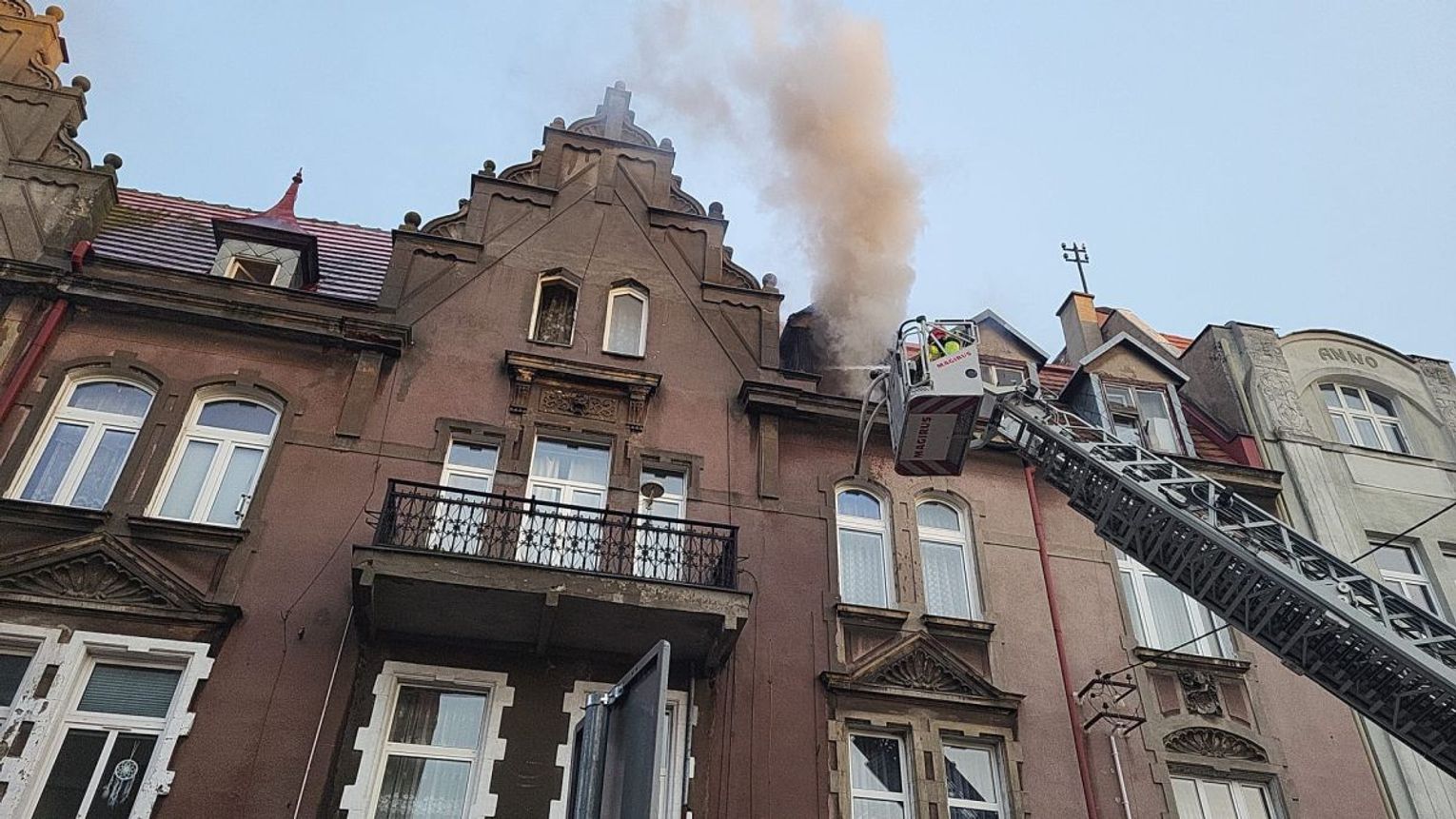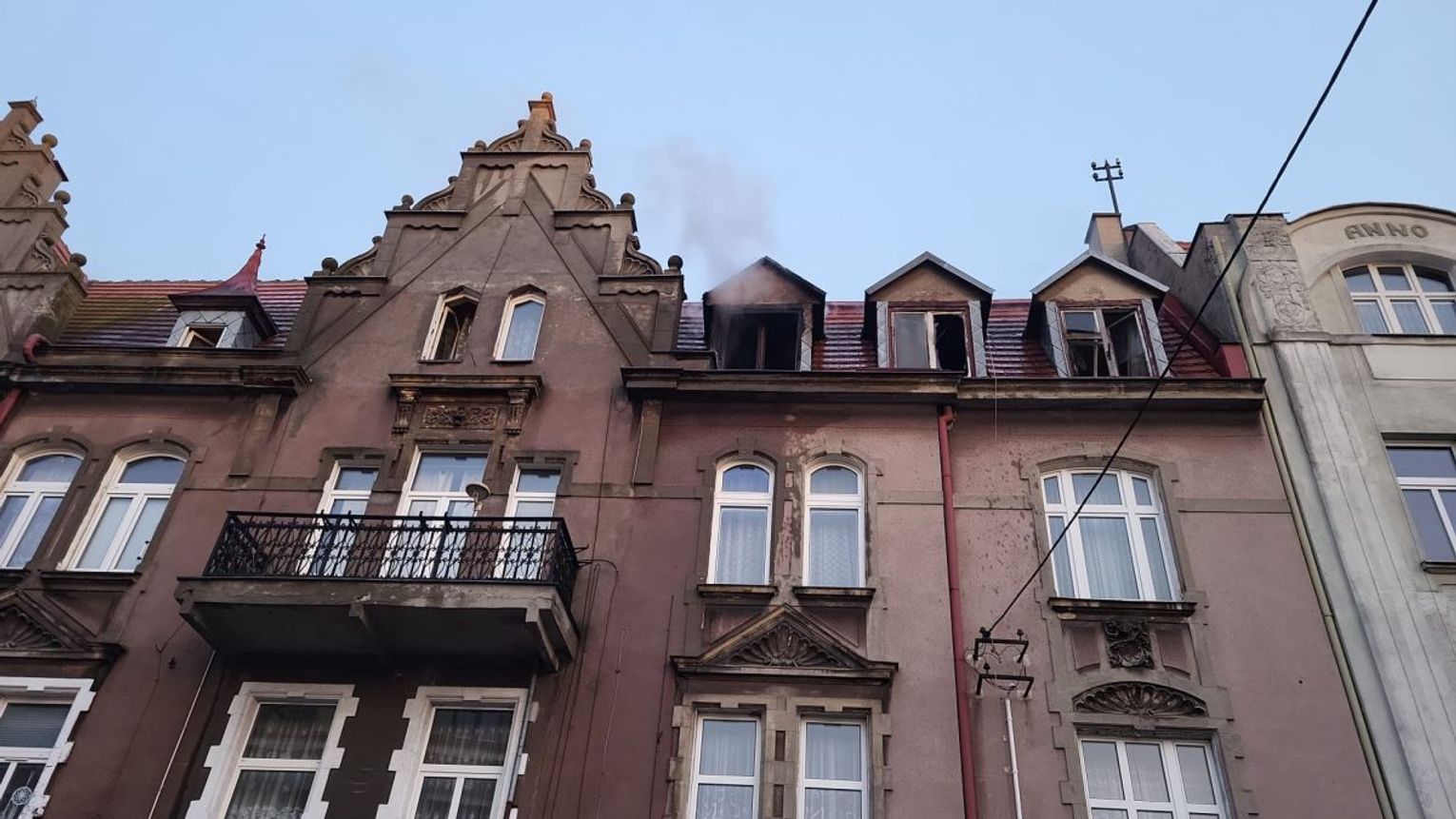 Ok. godz. 20.31 widać było płomienie wydobywające się z najwyższego piętra kamienicy.