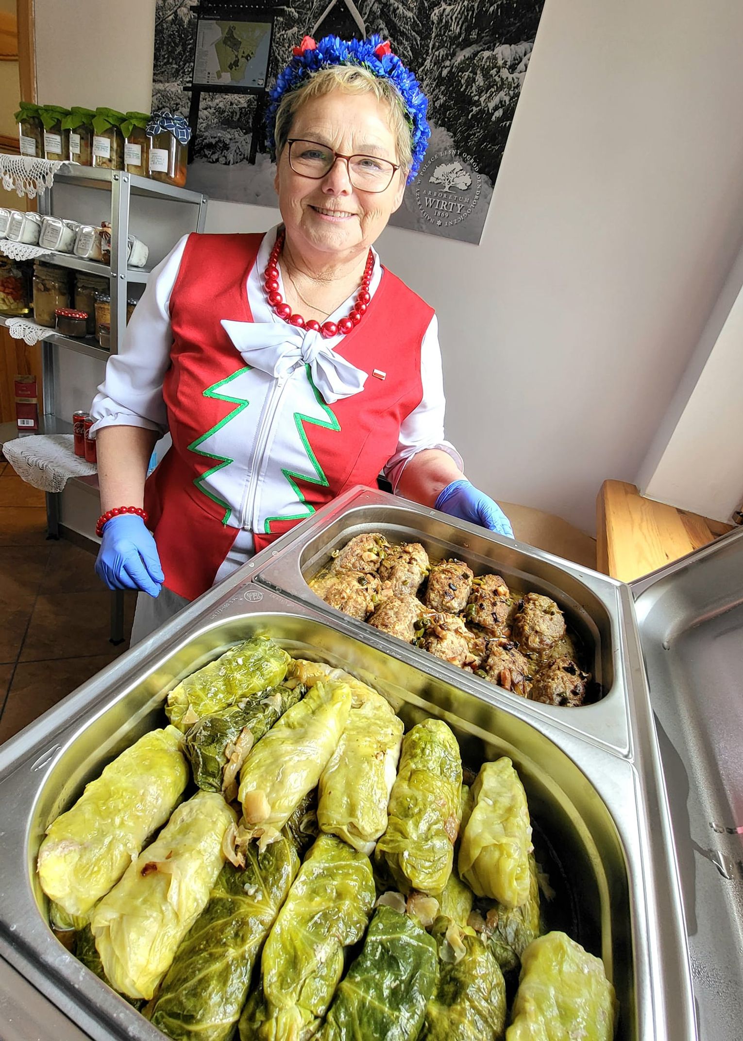 Same smakołyki, na ciepło i na zimno, na słono i na słodko, na miejscu i na wynos, do wyboru - do koloru, w tym m.in. zrazy po kociewsku, gulandzie, zupy: szczawiowa, brukiew, botwinka, czarnina, pomidorowa, pasztety (wieprzowy i z kaczki), bigos, smalec, ciasta i ciasteczka, desery, m.in. kociewski gryz oraz pyszności z grilla. A to tylko część menu. Są także wspaniałe przetwory, a oferta jest wciąż uzupełniana o nowe dania. Jednym słowem – tu zawsze zjecie coś pysznego.