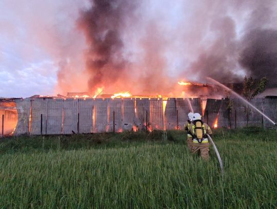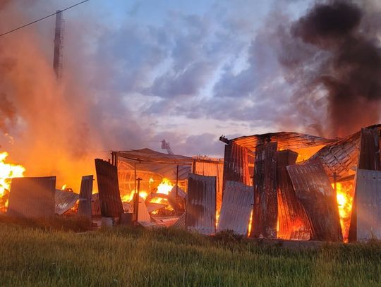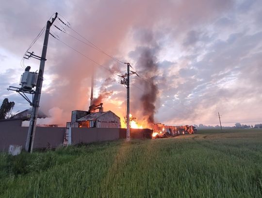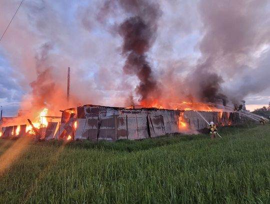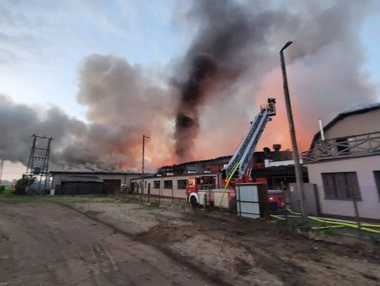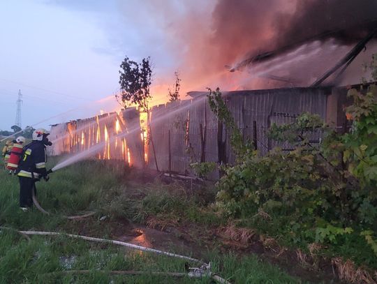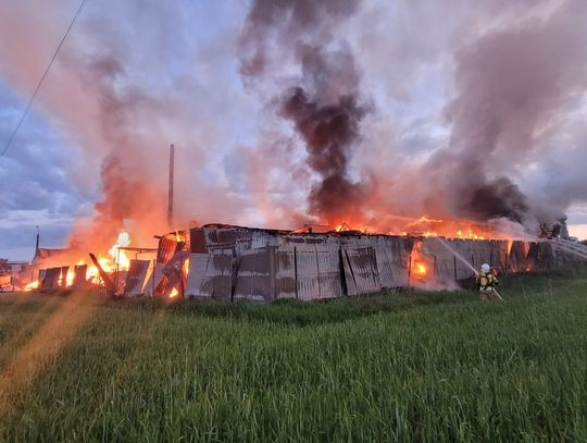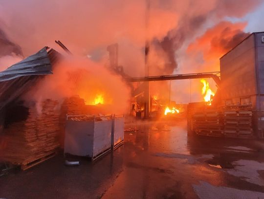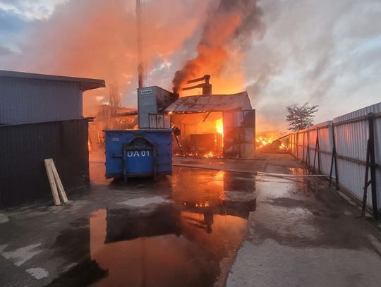 [FOTO] Strażacy ze Starogardu gasili w nocy ogromny pożar stolarni w gminie Czersk. Zakład produkował trumny