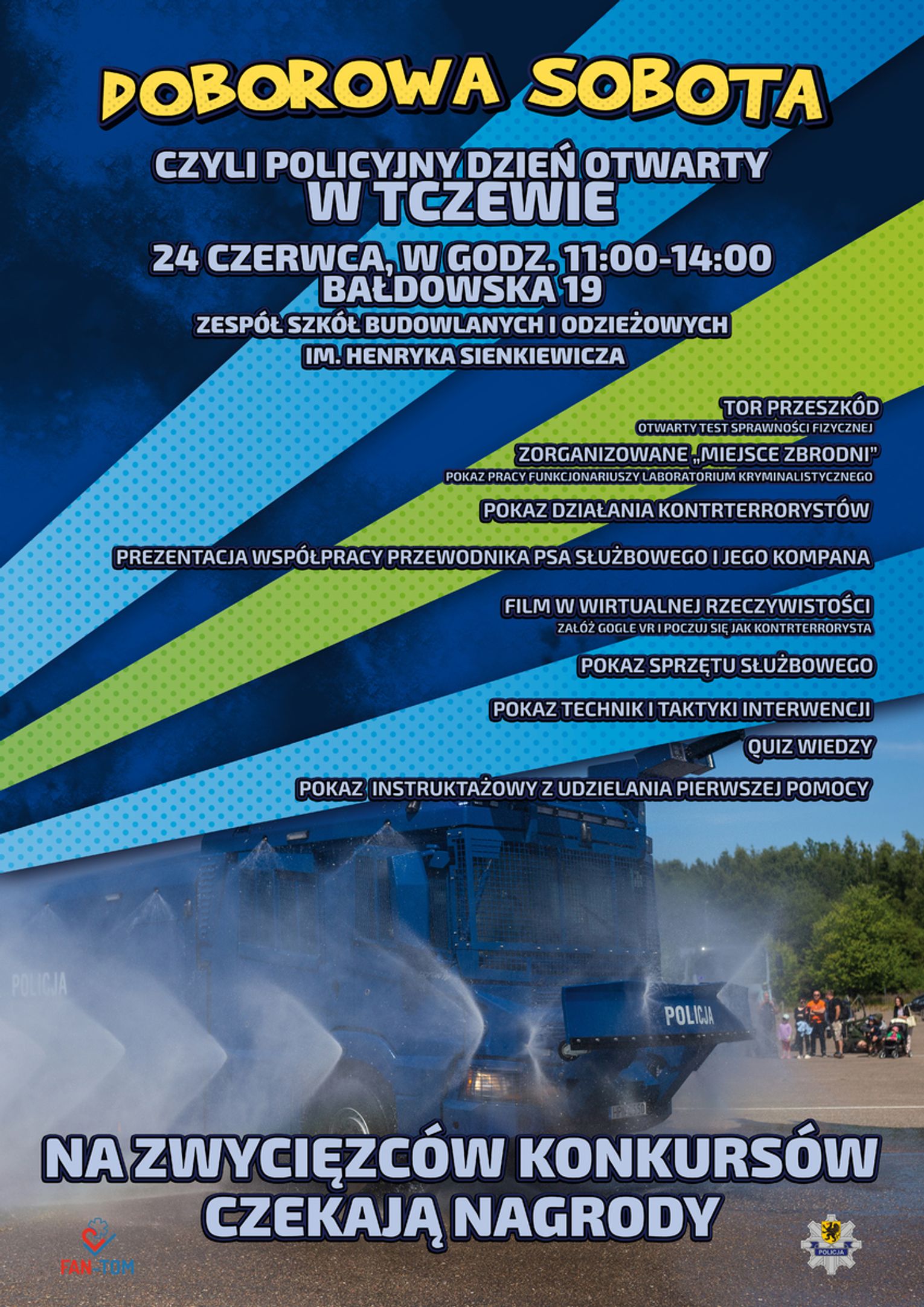 Zapraszamy serdecznie na nasze wydarzenie w Zespole Szkół Budowlanych i Odzieżowych przy ulicy Bałdowskiej 19 w Tczewie 24 czerwca w godz. 11.00 – 14.00. To wyjątkowa okazja, aby spędzić niezapomniane chwile w towarzystwie funkcjonariuszy i poznać ich pracę od kuchni. Przyjdźcie i dołączcie do naszej policyjnej rodziny!