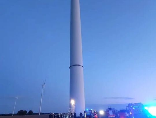 w sprzęt do działań na wysokości oraz z plecakiem medycznym dostali się do osoby poszkodowanej po około 45 minutach. Ratownicy przejęli prowadzenie RKO od pracownika farmy wiatrowej.