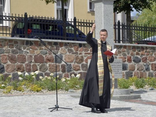 Na zakończenie, Burmistrz podziękował wszystkim, którzy mieli swój udział w sfinalizowaniu tego ważnego zadania. Po uroczystym przecięciu wstęgi, miejsce zostało poświęcone przez ks. Proboszcza Wojciecha Głogowskiego, a następnie głos zabrali zaproszeni goście. Popłynęło wiele ciepłych słów uznania pod adresem gospodarzy, za które serdecznie dziękujemy.
