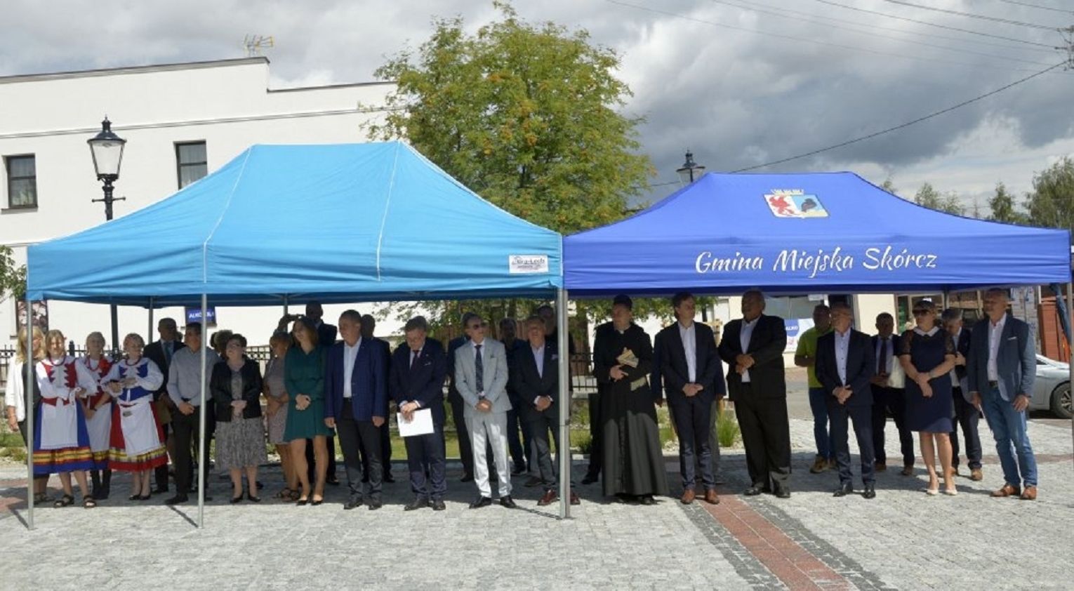 W uroczystości wzięli udział zaproszeni goście: Wiceprzewodniczący Sejmiku Województwa Pomorskiego oraz Doradca Prezydenta Rzeczypospolitej Polskiej – Piotr Karczewski, doradca Wojewody Pomorskiego – Ireneusz Szweda, Przewodniczący Rady Miejskiej w Skórczu – Krzysztof Czapiewski wraz z radnymi Rady Miejskiej w Skórczu, Wójtowie zaprzyjaźnionych gmin: Wójt Gminy Smętowo Graniczne – Anita Galant, Wójt Gminy Skórcz – Sławomir Czechowski, Wójt Gminy Osiek – Janusz Kaczyński, Wójt Gminy Morzeszczyn – Piotr Laniecki oraz Wójt Gminy Bobowo – Sylwester Patrzykąt, proboszcz parafii pw. Wszystkich Świętych w Skórczu – ks. Wojciech Głogowski, przedstawiciele Generalnego Wykonawcy Firmy Szarafin: dyrektor ds. realizacji projektu – Waldemar Wilgan i dyrektor operacyjny – Maciej Woźniak, projektant – Karol Szykowny oraz inspektor nadzoru – Marek Kaczmarczyk.