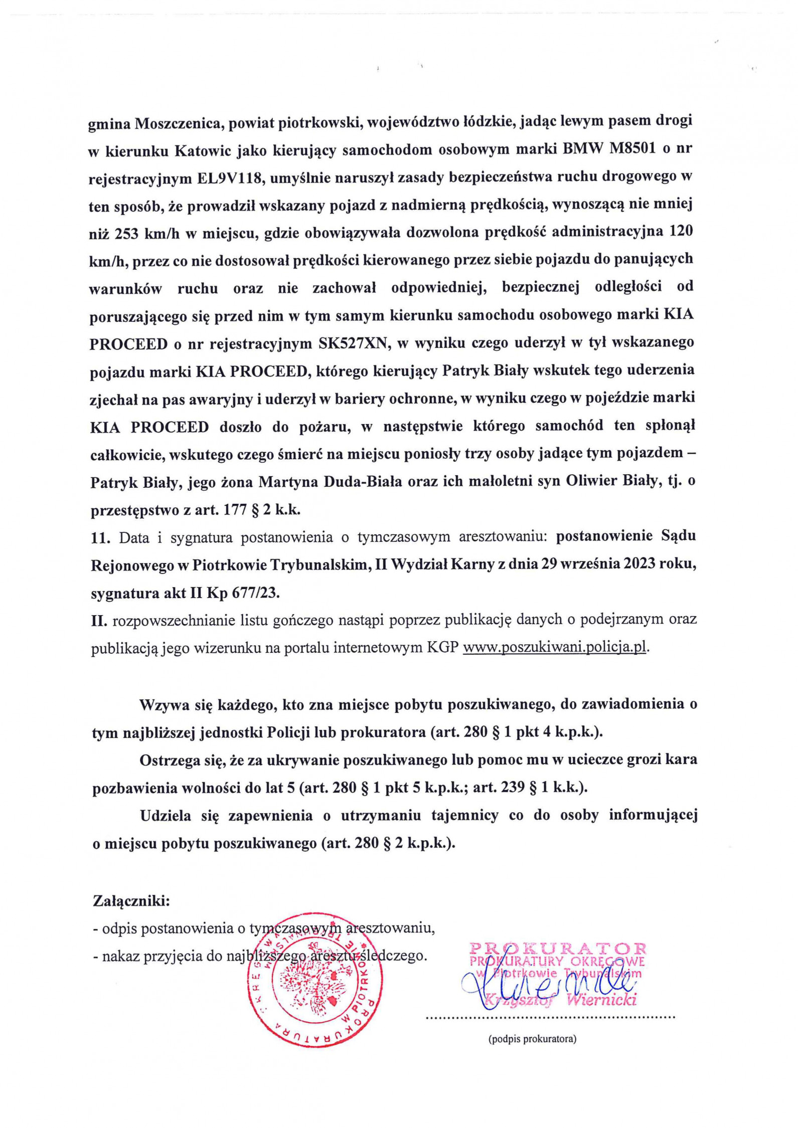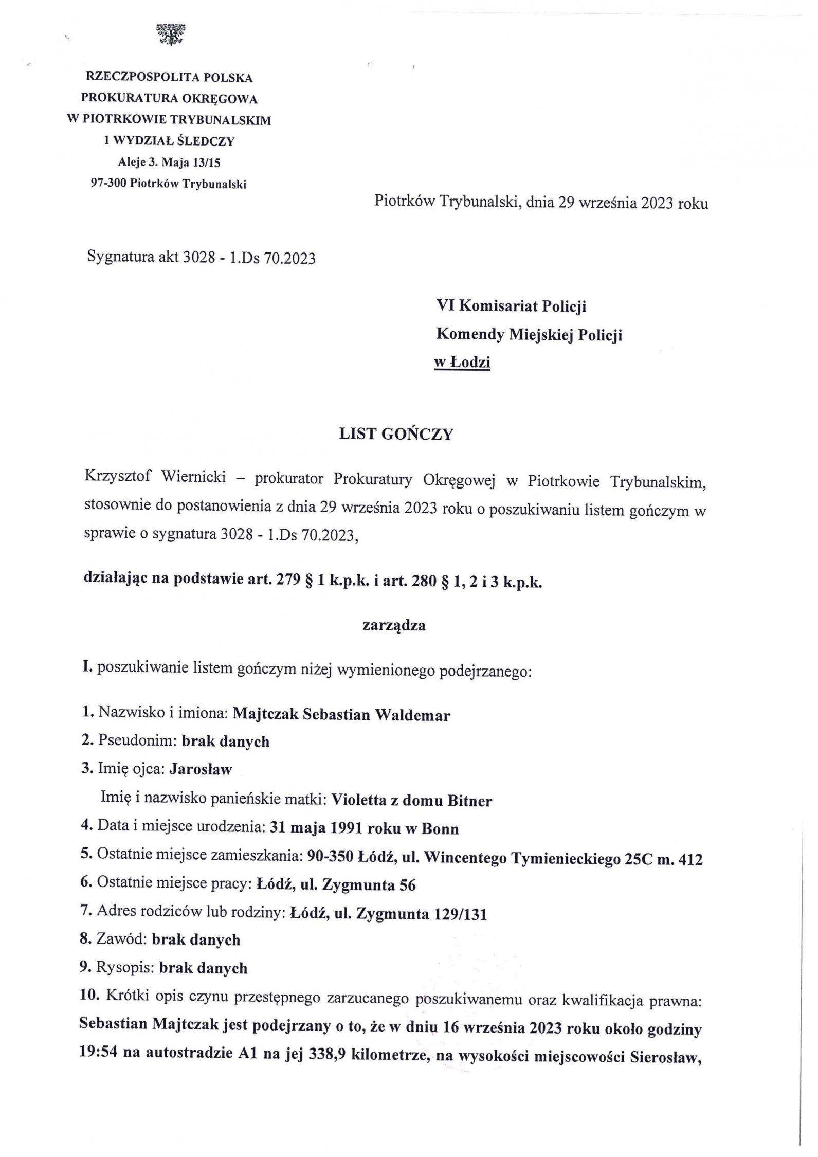 Wszystkie osoby, które mają informacje na temat miejsca pobytu poszukiwanego, proszone są o kontakt z VI KP KMP w Łodzi ul. Wysoka 45 lub kontakt tel.+48 47 841 13 00;+48 47 841 13 01 (całodobowo) tel. +48 47 841 69 43 (czynny od 8.00 do 16.00) lub najbliższą jednostką policji.