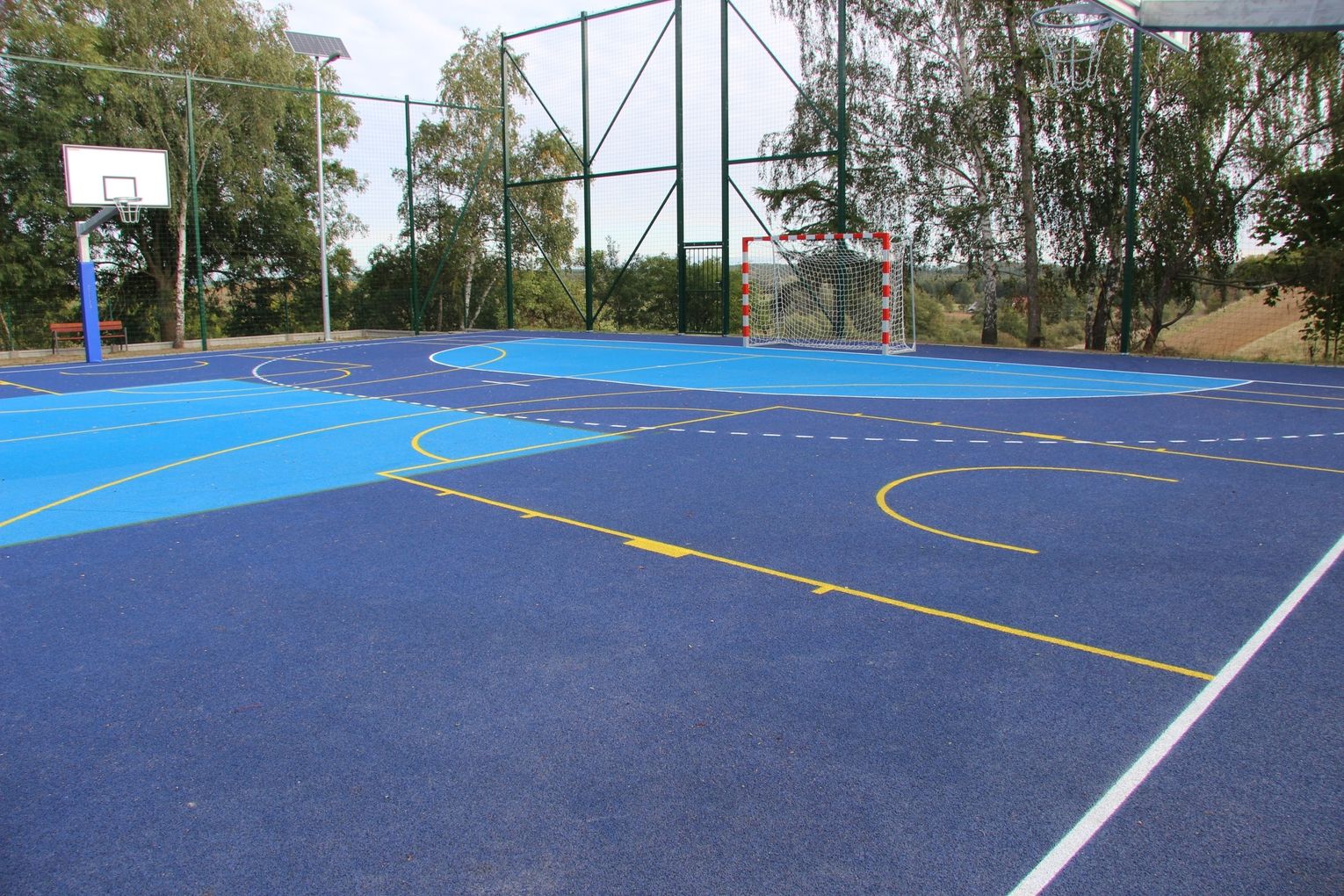 Zaprojektowane przez Mieczysława Tkaczyka z Banina (INDOM) boiska o wymiarach 41 x 23 m, mają nawierzchnią poliuretanową, do gry w piłkę ręczną, tenisa ziemnego, siatkówkę, koszykówkę i treningi piłki nożnej.