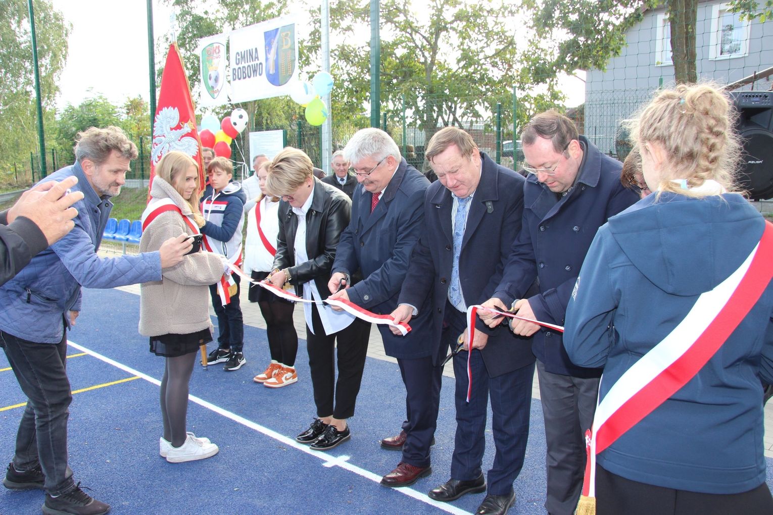 - Cieszymy się, że udało nam się zrealizować tak długo wyczekiwane przedsięwzięcia, dzięki którym mieszkańcy zyskali lepsze warunki do zajęć sportowo-rekreacyjnych. Inwestycje były możliwe dzięki dużej dotacji pozyskanej ze środków Rządowego Funduszu Polski Ład, z którego wiele środków trafia do wsi popegeerowskich. Wkład własny naszej Gminy wyniósł 38.991 zł – mówił, podczas uroczystego otwarcia boisk, wójt Gminy Bobowo Sylwester Patrzykąt. i szczególnie docenił zaangażowanie pani podinspektor Sandry Czubek, czuwającej z ramienia gminy nad przebiegiem inwestycji.