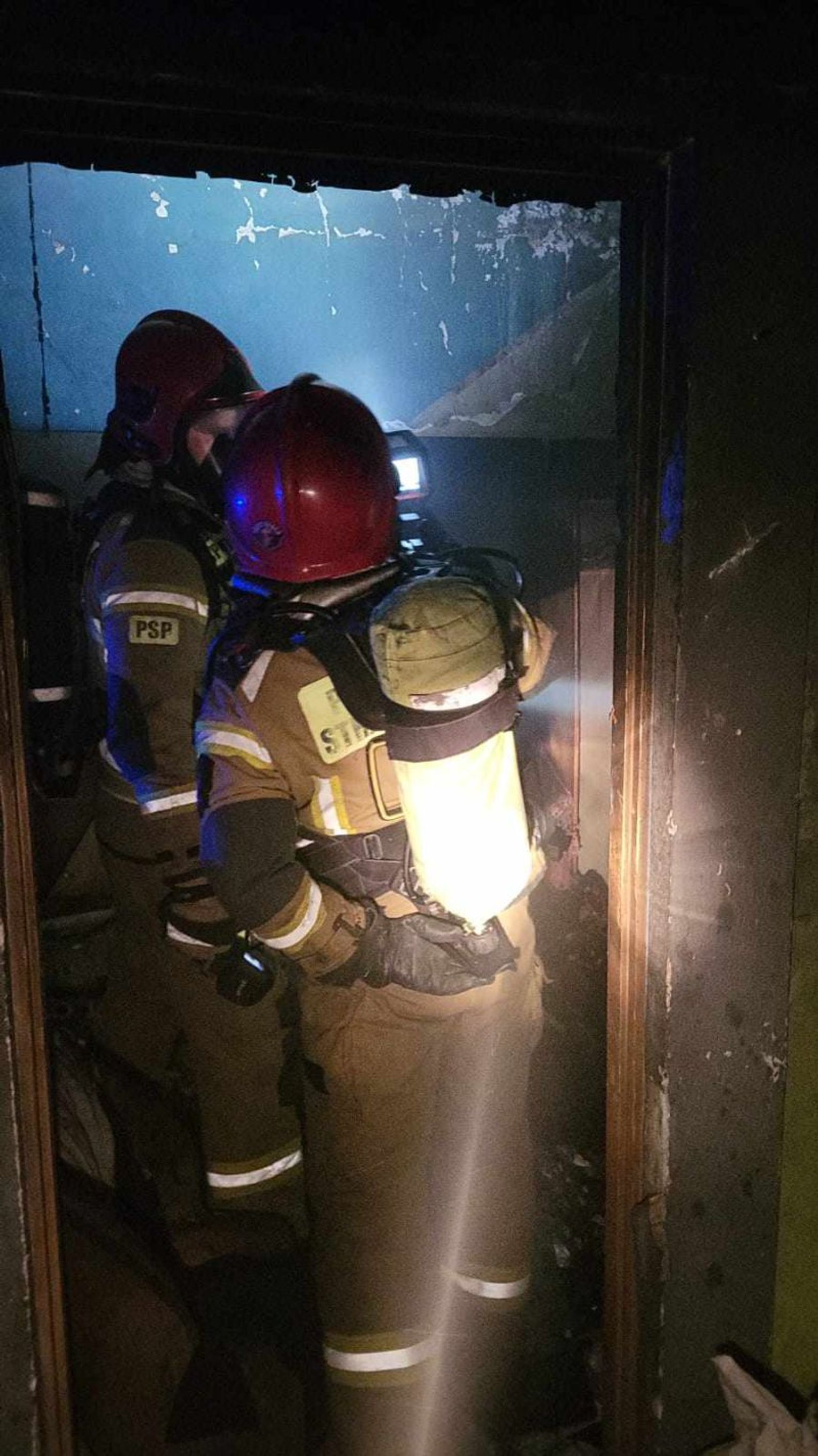 Po przybyciu na miejsce zdarzenia zastano dym wydobywający się z okna na pierwszym piętrze.