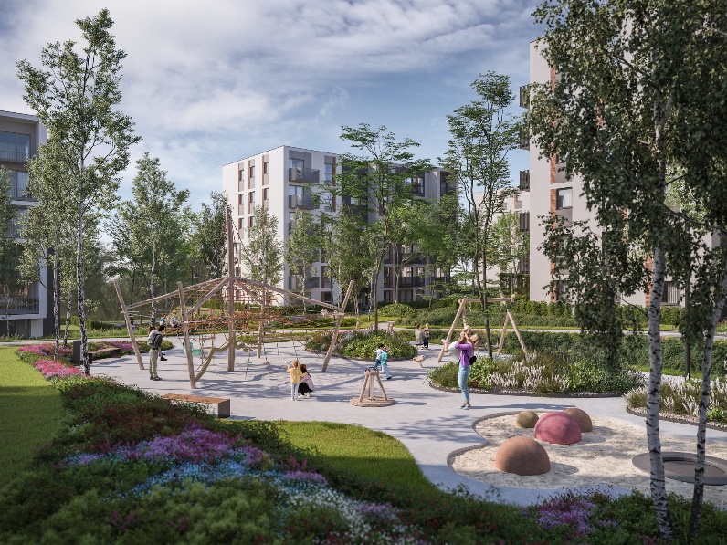 Z myślą o najmłodszych Domesta stworzyła również wyjątkowy plac zabaw z oryginalną zabawką wodną. Inspiruje ona do eksperymentowania i zabawy z naturalnymi materiałami. Dodatkowo możliwość huśtania się, wspinaczki po sieci i skakania po linach pozytywnie wpłynie na rozwój motoryki, równowagi i koordynacji ruchowej. Na terenie osiedla zaprojektowano również przestrzeń do zabawy zawierającą najbardziej popularne i lubiane elementy placu zabaw, typu: zjeżdżalnie i piaskownice.