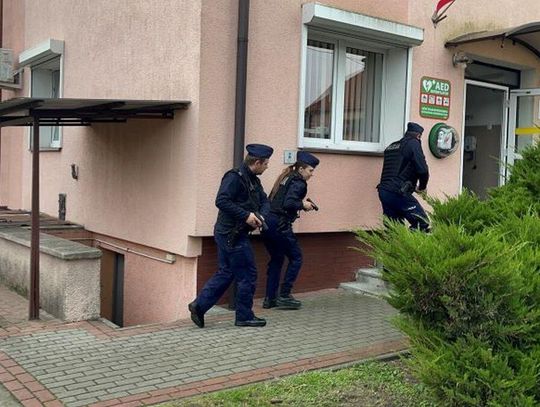 Wczoraj dyżurny sztumskiej policji otrzymał informację o wtargnięciu uzbrojonego napastnika na teren Urzędu Gminy w Mikołajkach Pomorskich. Z relacji pracowników wynikało, że napastnik jest uzbrojony w broń w substancje łatwopalne i noże, a także wziął jako zakładnika jednego z pracowników urzędu, barykadując się w jednym z pomieszczeń. Policyjny patrol potwierdził tę informację. Takie było założenie ćwiczeń sztabowych, które odbyły się w Mikołajkach Pomorskich.