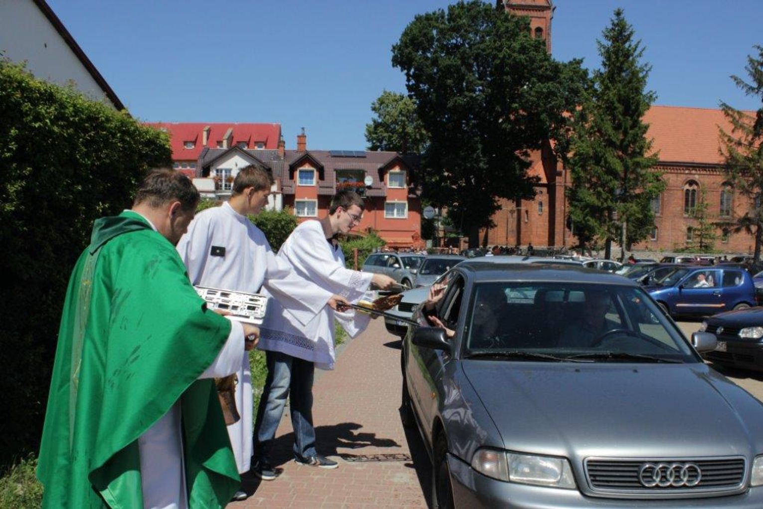 W ubiegłą niedzielę (21 lipca) na przykościelnym parkingu, ksiądz proboszcz Dariusz Leman poświęcił samochody parafian i gości uczestniczących w niedzielnej Eucharystii.