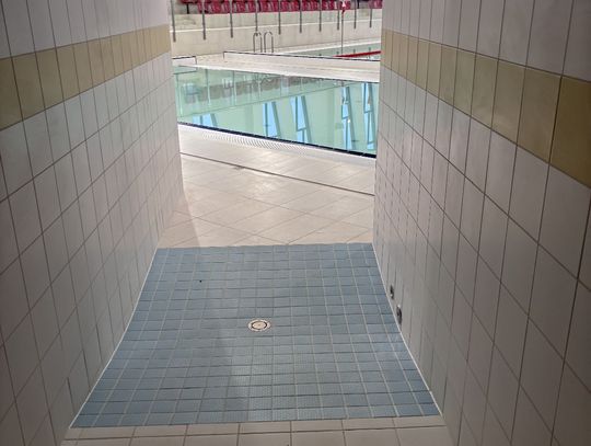 Wejście do budynku z poziomu terenu będzie miało rampę wjazdową dla wózków osób niepełnosprawnych, a w hali basenowej znajdzie się rampa, która prowadzić będzie na widownię. Ponadto w części ogólnodostępnej wydzielono węzeł szatniowy dla osób niepełnosprawnych oraz miejsce na wózki, przebieralnię i pomieszczenie prysznicowo-sanitarne.