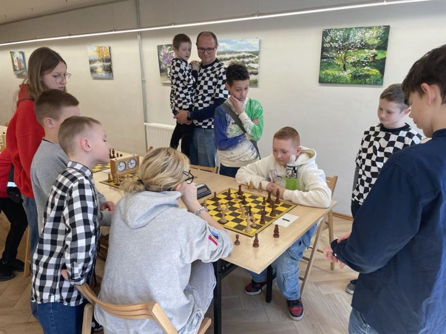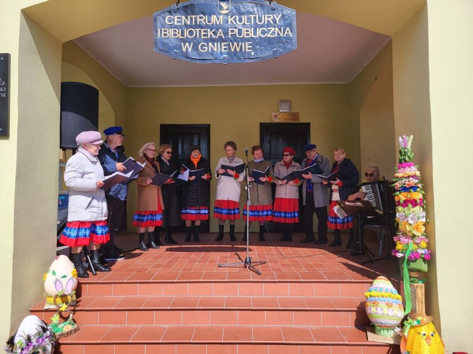 W Sali Kameralnej dzieci miały możliwość uczestniczyć w warsztatach, podczas których samodzielnie wykonały wełniane baranki oraz kolorowe jajka. Dodatkową atrakcją było wielkie poszukiwanie wielkanocnych pisanek. Na rynku ukryte zostały jajka z logo Centrum Kultury i Biblioteki Publicznej w Gniewie. Dzieci, które je znalazły - otrzymały świąteczne upominki. W sali wystawowej młodzi szachiści uczestniczyli w Wielkanocnym Turnieju Szachowym, który dostarczył wielu emocji i sportowej rywalizacji! W rozgrywkach najlepszy okazał się Alexander Bielak, II miejsce zajęła Nadia Łania, na III miejscu uplasował się Jakub Bielak a IV miejsce wywalczył Kacper Czarra. Gratulujemy. Ponadto między straganami przechadzał się zajączek, który częstował wszystkie dzieci słodkościami. Muzyczną atrakcją niedzieli był występ zespołu „Błękitna Wstęga”.