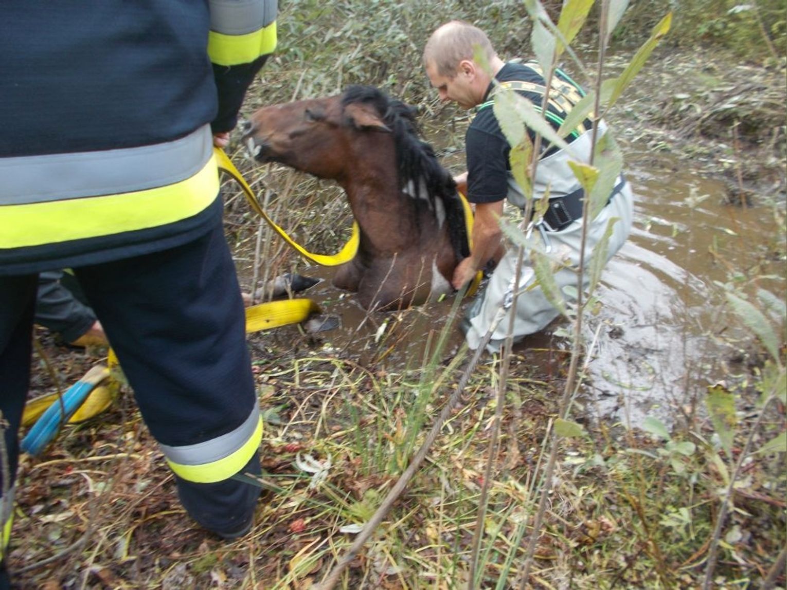 Wczoraj o godz. 13.55 dyżurny stanowiska Kierowania Komendanta Powiatowego PSP w Starogardzie Gd. otrzymał zgłoszenie o koniu, który znajdował się w bagnistym stawie. Po przybyciu ratowników na miejsce zdarzenia (Obozin, gm. Skarszewy), okazało się, że koń zanurzony jest w bagnistym stawie po samą szyję. Właściciel konia był obecny na miejscu zdarzenia.