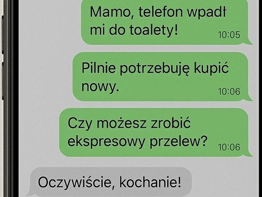 6 kwietnia policjanci z Komisariatu Policji w Gniewie otrzymali zgłoszenie od 73-letniej kobiety, która została oszukana przez internetowego oszusta. Do seniorki napisał ktoś, kto podawał się za jej syna. Twierdził, że jego telefon wpadł do toalety i pilnie potrzebuje pieniędzy na zakup nowego urządzenia. Kobieta, przekonana, że naprawdę rozmawia ze swoim dzieckiem, natychmiast chciała pomóc. W krótkim czasie wykonała trzy ekspresowe przelewy na łączną kwotę 3 tysięcy złotych. Dopiero później, gdy zadzwoniła do syna, zrozumiała, że padła ofiarą oszustwa. Policjanci pracują nad ustaleniem sprawcy i jednocześnie przypominają, jak nie dać się oszukać.