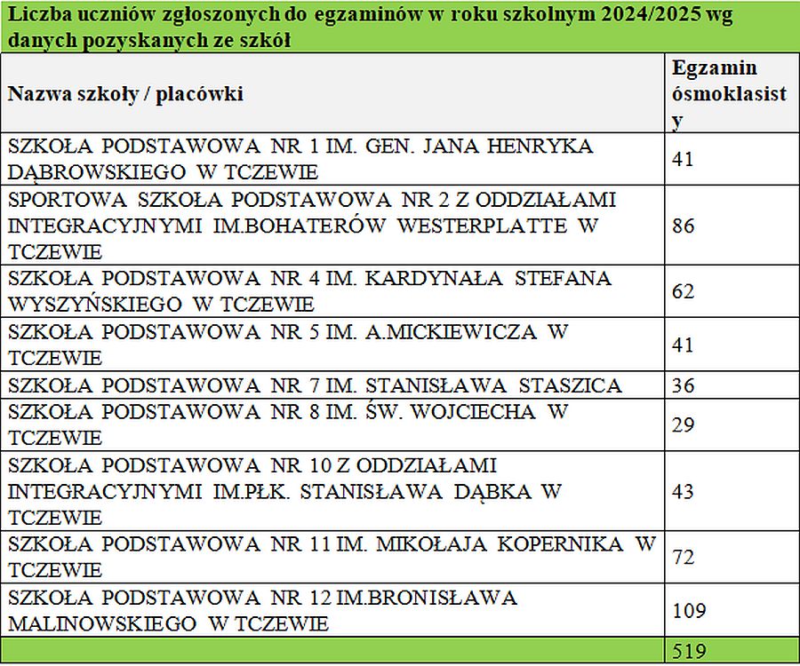 W Tczewie do egzaminu ósmoklasisty zostało zgłoszonych 605 uczniów: